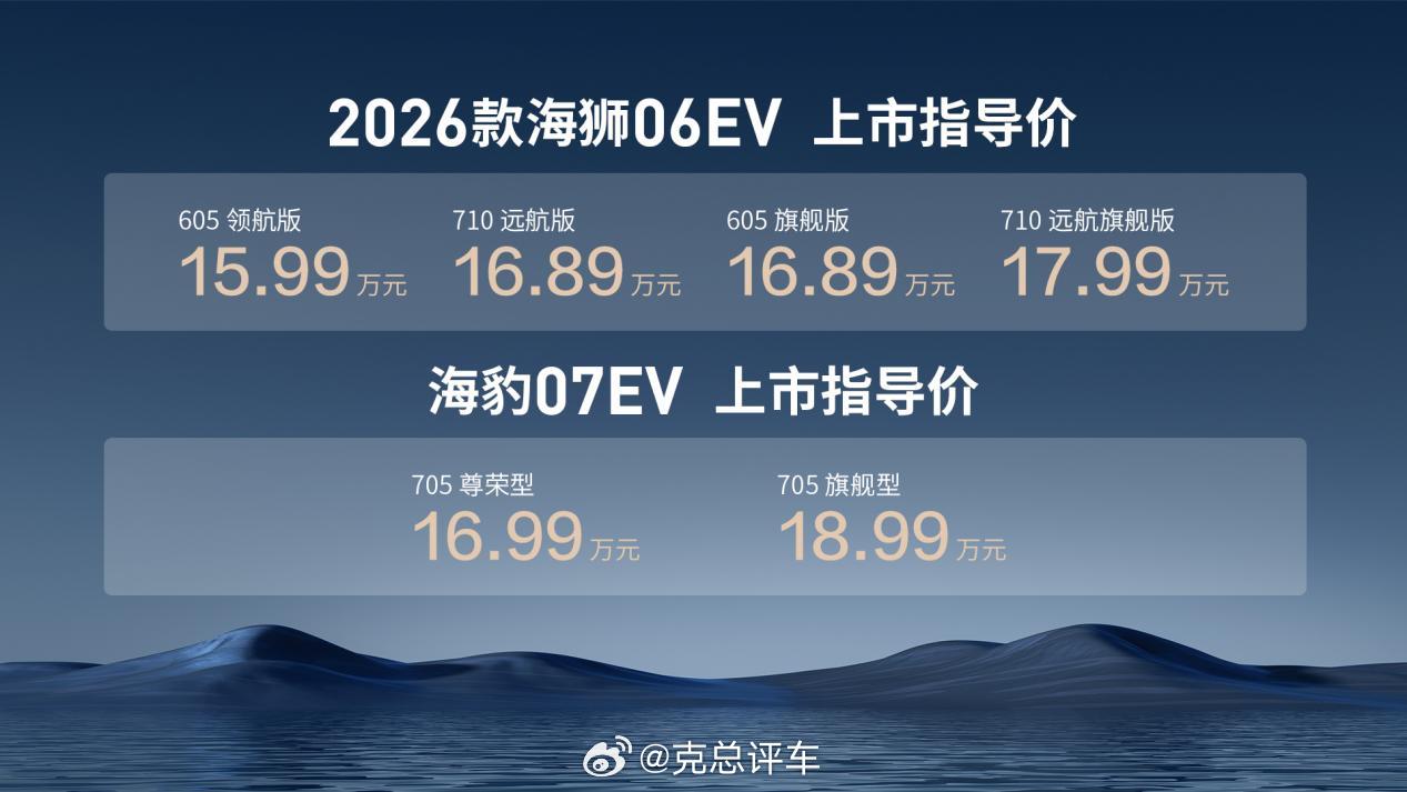克总评车|比亚迪海洋网再出牌!海狮不搞期货,2026款海狮06EV/海豹07EV/海豹08狮力豹发领跑闪充时代