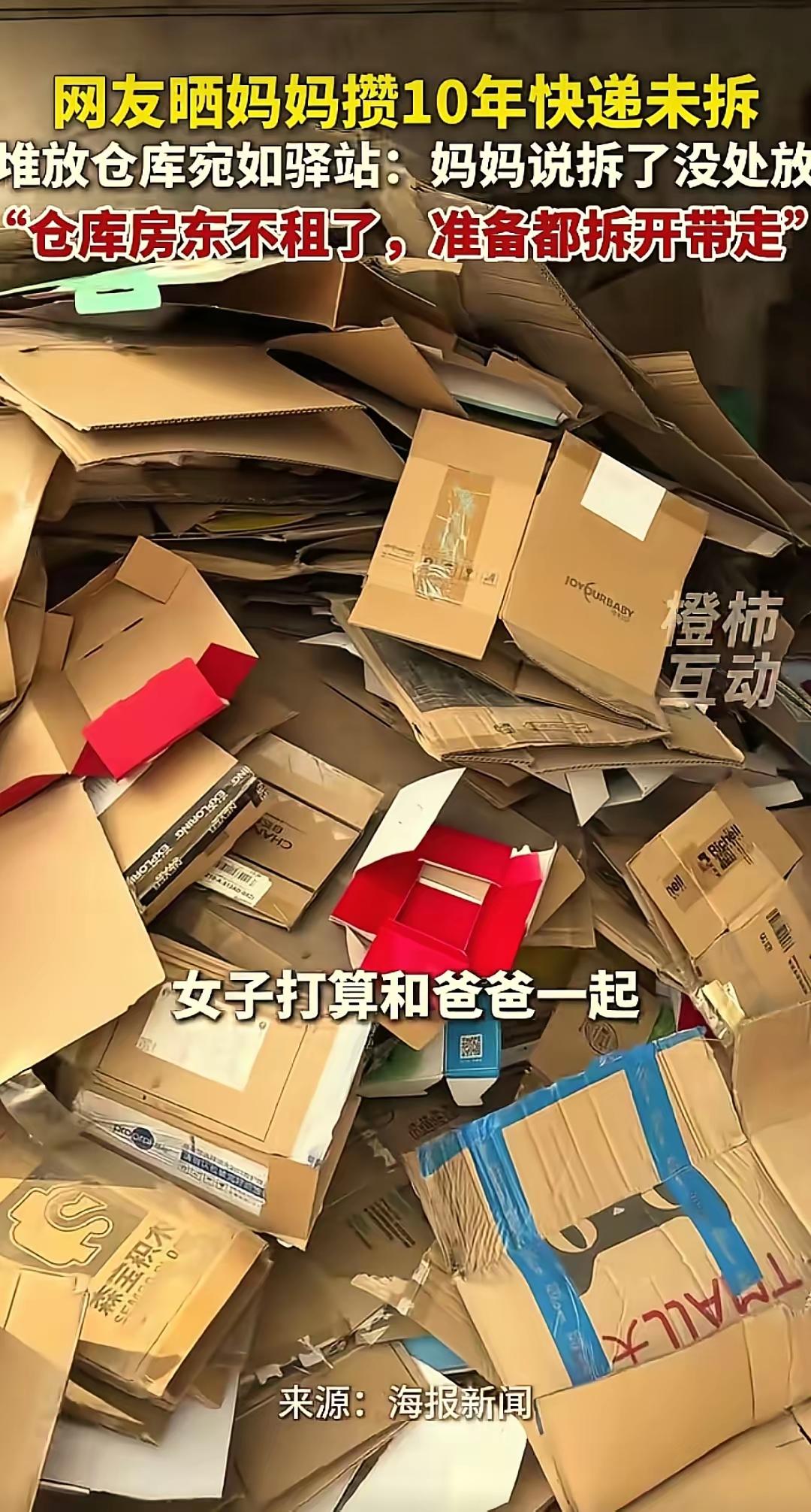 “太不可思议了!”江苏,一女子因要退租仓库,打开正要整理时傻眼了,里面竟然堆满了妈妈网购10年未拆封快递,足足像两座小山!放眼望去,简直就像个快递驿站!女子问及妈妈原因,她一句话让人哭笑不得:拆了也没处放。 女子站在仓库门口,半天都没缓过神来。她原本只是按照租期约定清理仓库、办理退租手续,推开门的那一刻,眼前的景象直接打破了她所有的预想。仓库里没有任何闲置家具或杂物,视线所及全是层层叠叠的未拆封快递,从地面一直堆到接近屋顶,两侧的包裹堆得整整齐齐,俨然成了私人快递存放点,连一条能正常行走的过道都没有。 她走近翻看才发现,这些快递的时间跨度长达十年,快递单有的泛黄褪色,有的被灰尘覆盖,早期的纸质快递单和近几年的防水快递袋混在一起,能清晰看出这些年电商包装的变化。她试着挪动最外侧的包裹,发现底层的快递已经被压得紧实,部分包装盒出现了变形,没有任何一个包裹有被拆开过的痕迹。 女子心里又气又无奈,她立刻联系妈妈赶到现场,反复追问才确认,这满满一仓库的东西,全是妈妈十年间网购的商品。小到纸巾、洗漱用品,大到家居摆件、服饰箱包,甚至还有各类零食、厨具,涵盖了生活里的各类品类,却始终保持着刚收到快递的样子。妈妈面对眼前的堆积如山的包裹,没有丝毫慌乱,反而坦然说出拆了也没处放,这句简单的话,让女子一时之间不知道该如何回应。 这些年妈妈沉迷线上购物,平台的优惠活动、直播间的促销讲解,都能让她不停下单。她总觉得商品价格划算,囤下来早晚能用得上,可家里的居住空间有限,真要拆开包装,根本没有摆放的地方。这个念头反复出现,妈妈便选择收到快递后直接送来仓库,既不占用家里空间,也不用面对拆开后无处安放的问题,十年间从未间断,慢慢就堆成了眼前的模样。 女子粗略计算后发现,十年的购物费用加上仓库租金,累计支出远超她的想象。退租的期限越来越近,她只能放下手头的工作,全身心投入到包裹清理中。她挨个拆开快递,对物品进行分类,全新未过期的日用品和食品,整理后捐赠给社区的公益服务站,破损无用的物品按照垃圾分类标准处理,整个清理过程持续了数日,耗费了大量的时间和精力。 近年来国内中老年线上消费群体持续扩大,便捷的网购渠道和多样的促销形式,让不少长辈出现盲目囤货的行为。相关消费调研显示,部分中老年消费者存在买而不用、过度囤积的问题,物品闲置率居高不下,像这位妈妈这样十年不拆封、专门租仓库存放的情况,属于较为极端的案例。 妈妈在亲眼看到清理的全过程后,也真正意识到自己的消费问题。她并非刻意浪费,只是被购物的冲动裹挟,忽略了实际需求和成本支出,最终造成了资源和金钱的双重浪费。女子也借着这件事,和妈妈耐心沟通理性消费的理念,提醒她后续购物要以实际需求为前提,不再盲目囤货。 这件看似滑稽的生活小事,戳中了很多人在消费中的通病。网购的便利不该成为盲目消费的理由,囤积物品的意义在于使用,而非单纯的堆积。理性规划开支、按需购买物品,让每一件东西都发挥价值,才是更踏实的生活方式,过度的囤积只会给自己增添负担,也造成不必要的浪费。 各位读者你们怎么看?欢迎在评论区讨论。