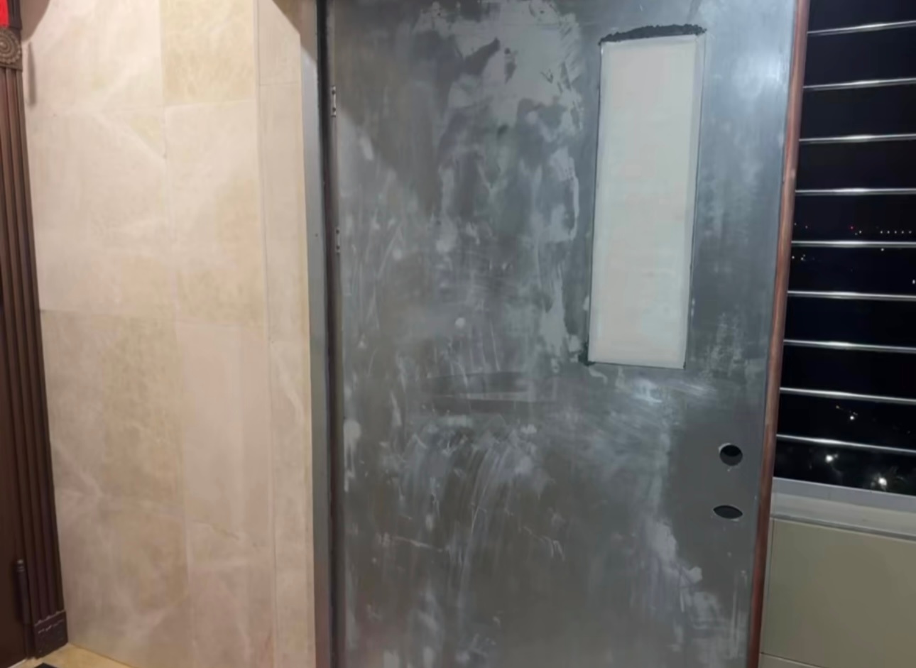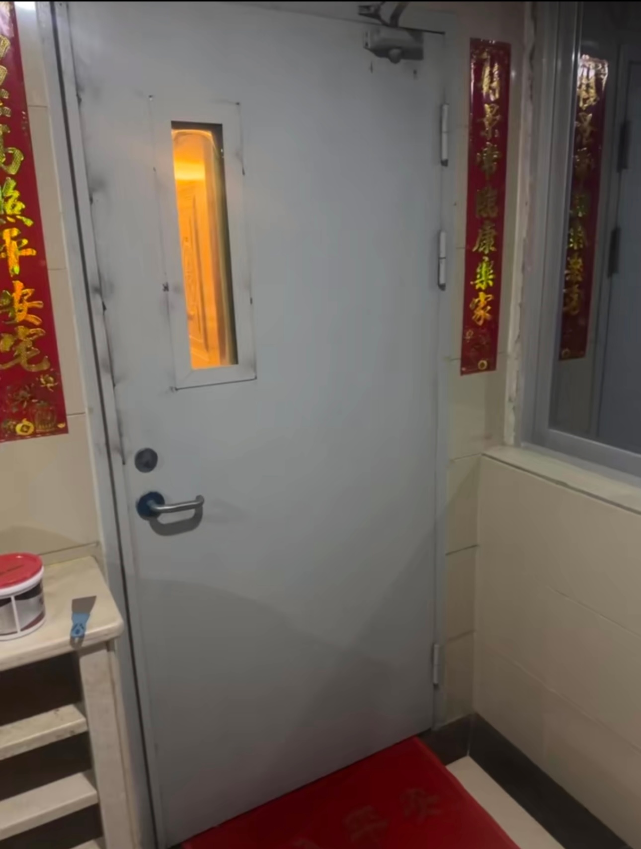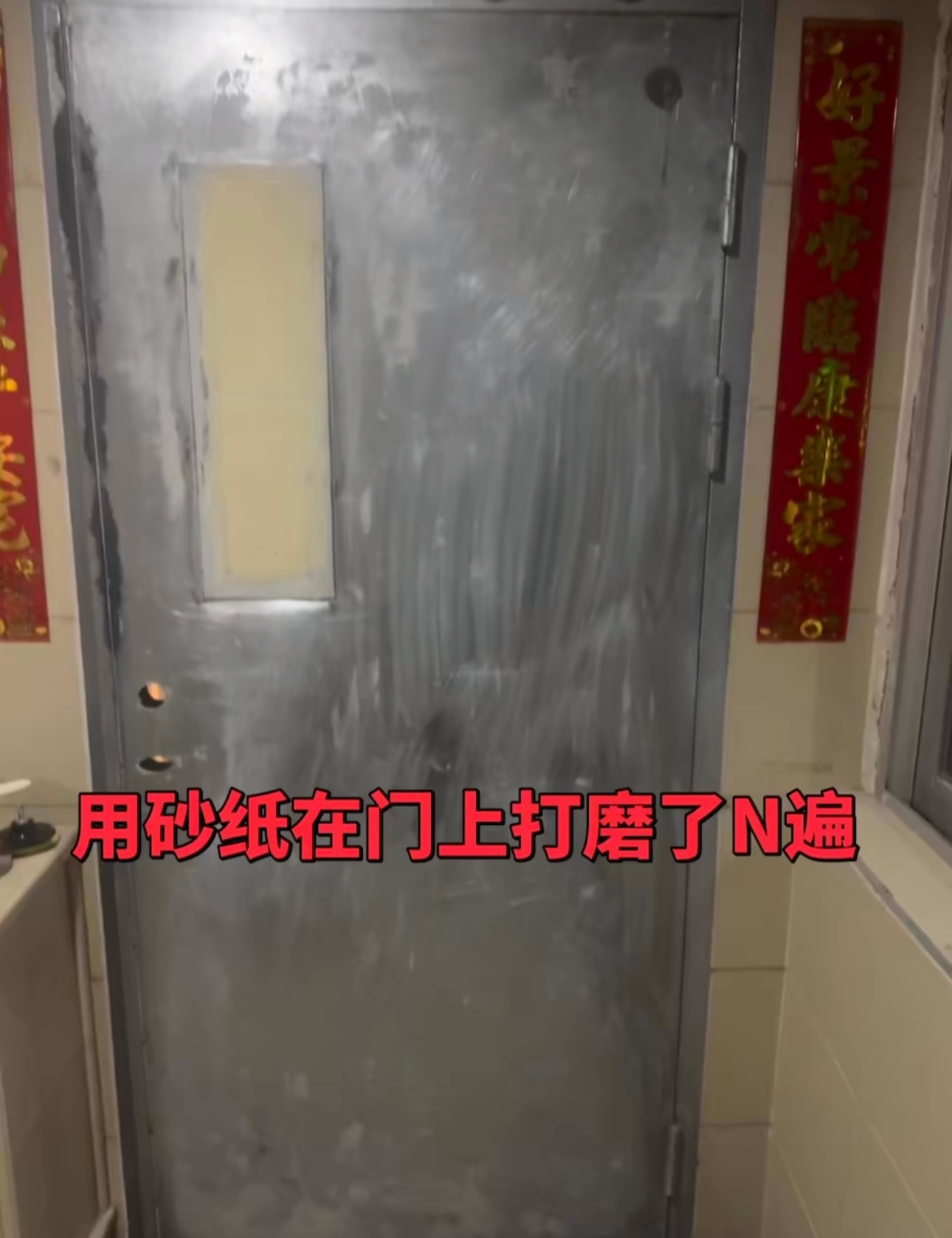 再也不和网上人吵架了……给消防防火门刮防火漆,封观察窗,上密码锁……