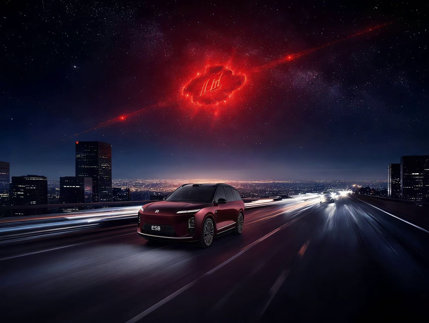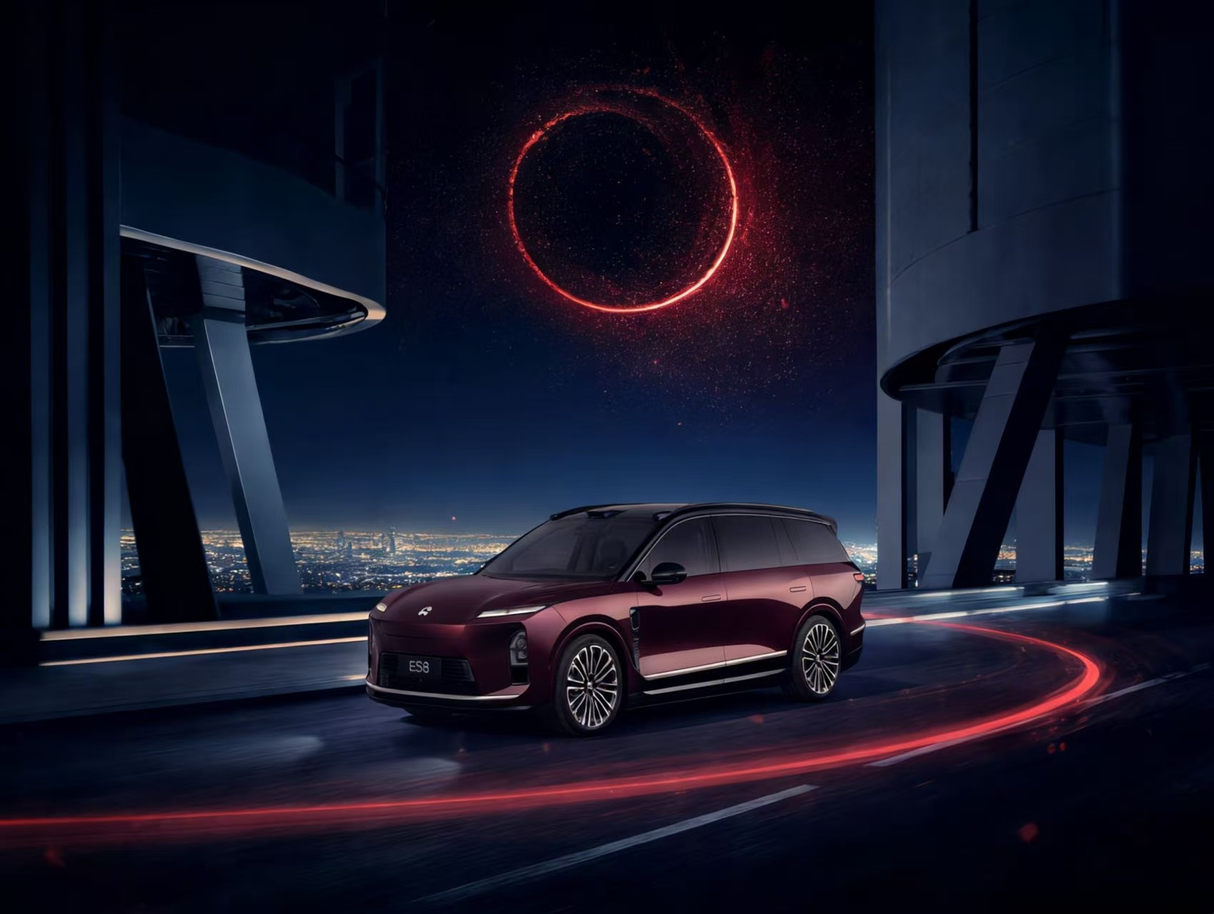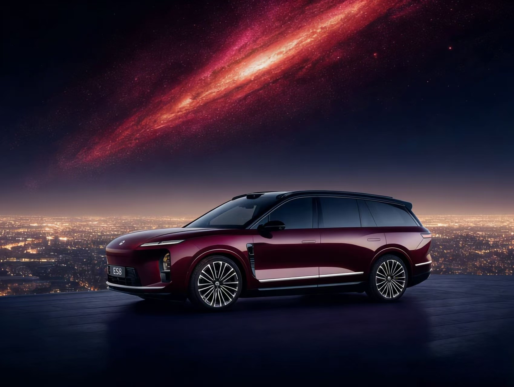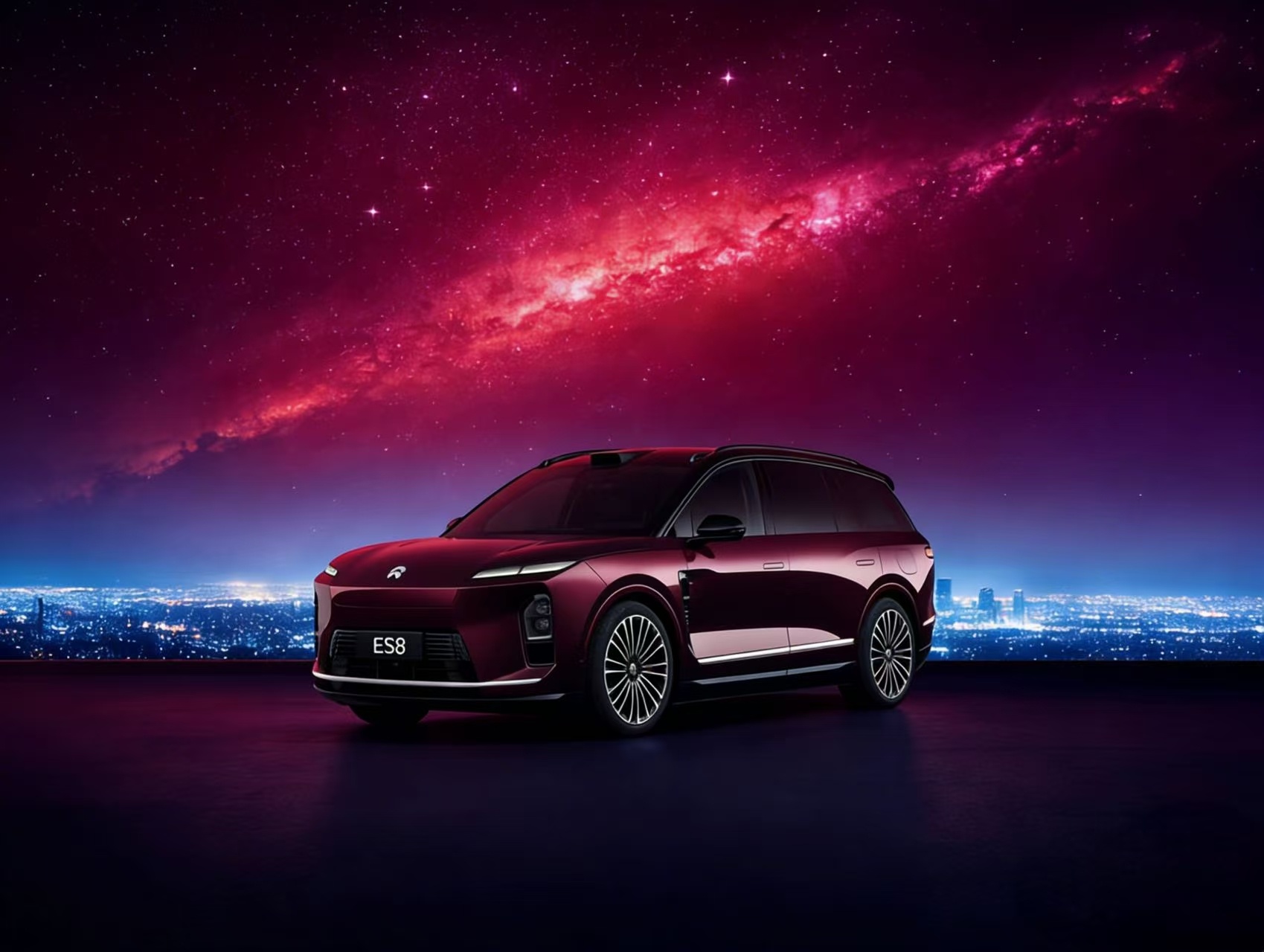 于是,我们就用实拍结合 AI 围绕 “星云红” 的灵感做了一组“创作”。从宇宙星云的能量,到城市夜色的光影,再到 ES8 车身本身的质感。大家感受下。蔚来全新ES8M42星云红