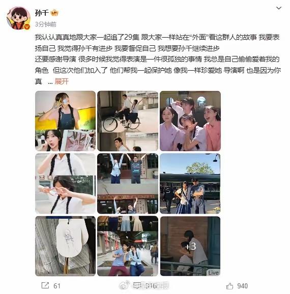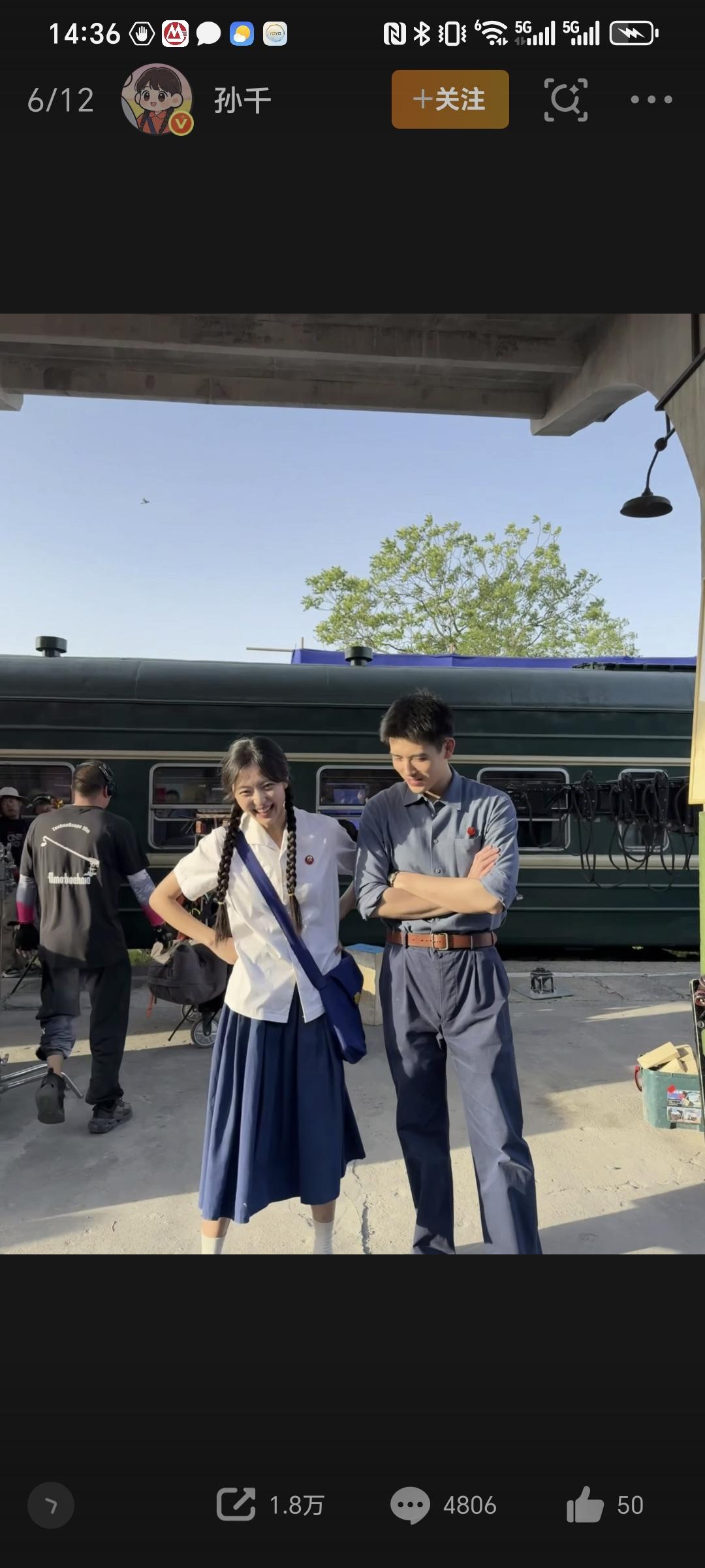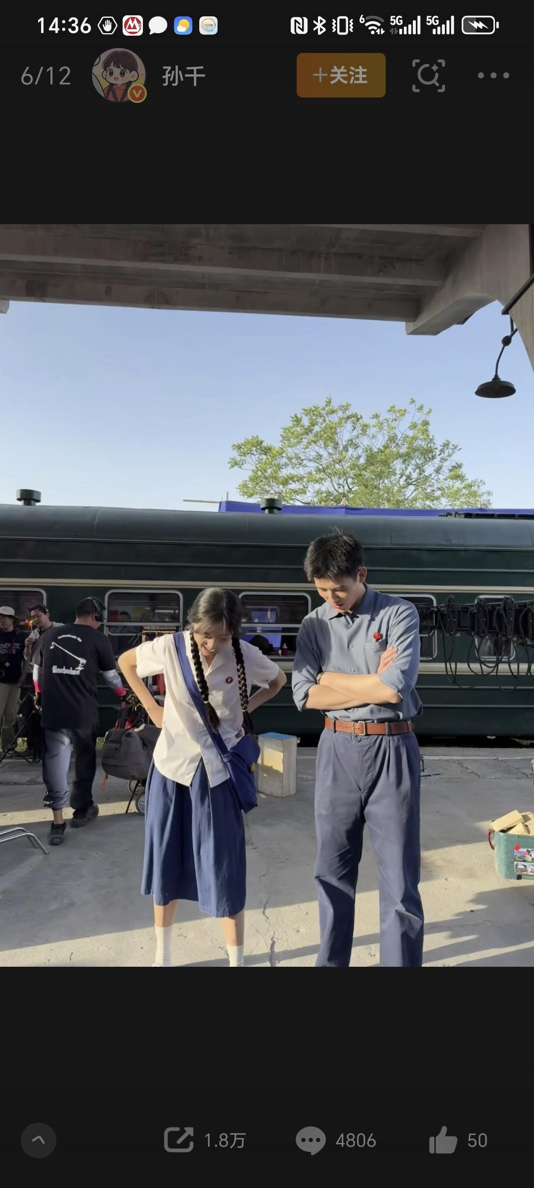 谁说孙千与陈飞宇没有亲密互动,这不来了吗?孙千和陈飞宇一直在片场聊天,两人聊的很开心。感觉就像那个年代腼腆的年轻男女。 孙千的脚搓着地面,手掐着腰,陈飞宇抱着双臂,开心地听着。说到开心处,孙千还仰起头大笑。 这也太甜了吧。 再看他们在宿舍楼道里,费霓给方沐阳揉肩膀,感觉就是老夫老妻。 孙千发文告别这个剧组,告别《纯真年代的爱情》,很真诚,也是对自己近十年努力表演的肯定。是金子总会发光,一切等待和努力都值得。