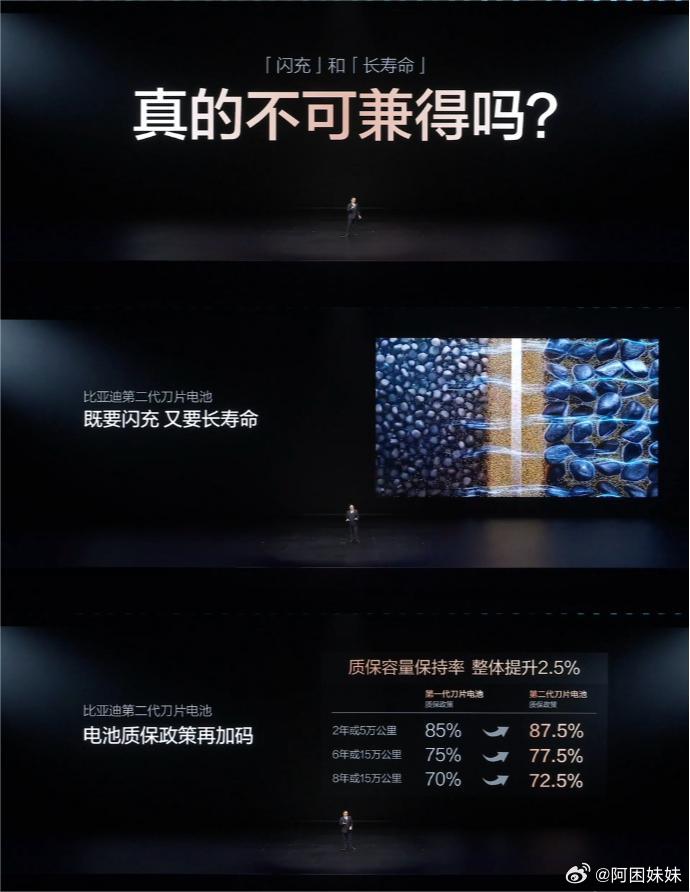 比亚迪通过打造“锂离子高速通道”和“全温域智能热管理系统”,让闪充尽量少产热,而且让热量更快、更均匀地散出去,从根源上平衡闪充与寿命,确保电池经久耐用。同时,第二代刀片电池延续电芯终身保修政策,质保容量保持率整体提升2.5%,让用户既充得快,又用的久!另外比亚迪给每个闪充桩都配备了超级快放的储能系统,二是无论电网强弱,哪怕多车同时充电也不降压,保证每位用户都能获得稳定、极致的充电速度。