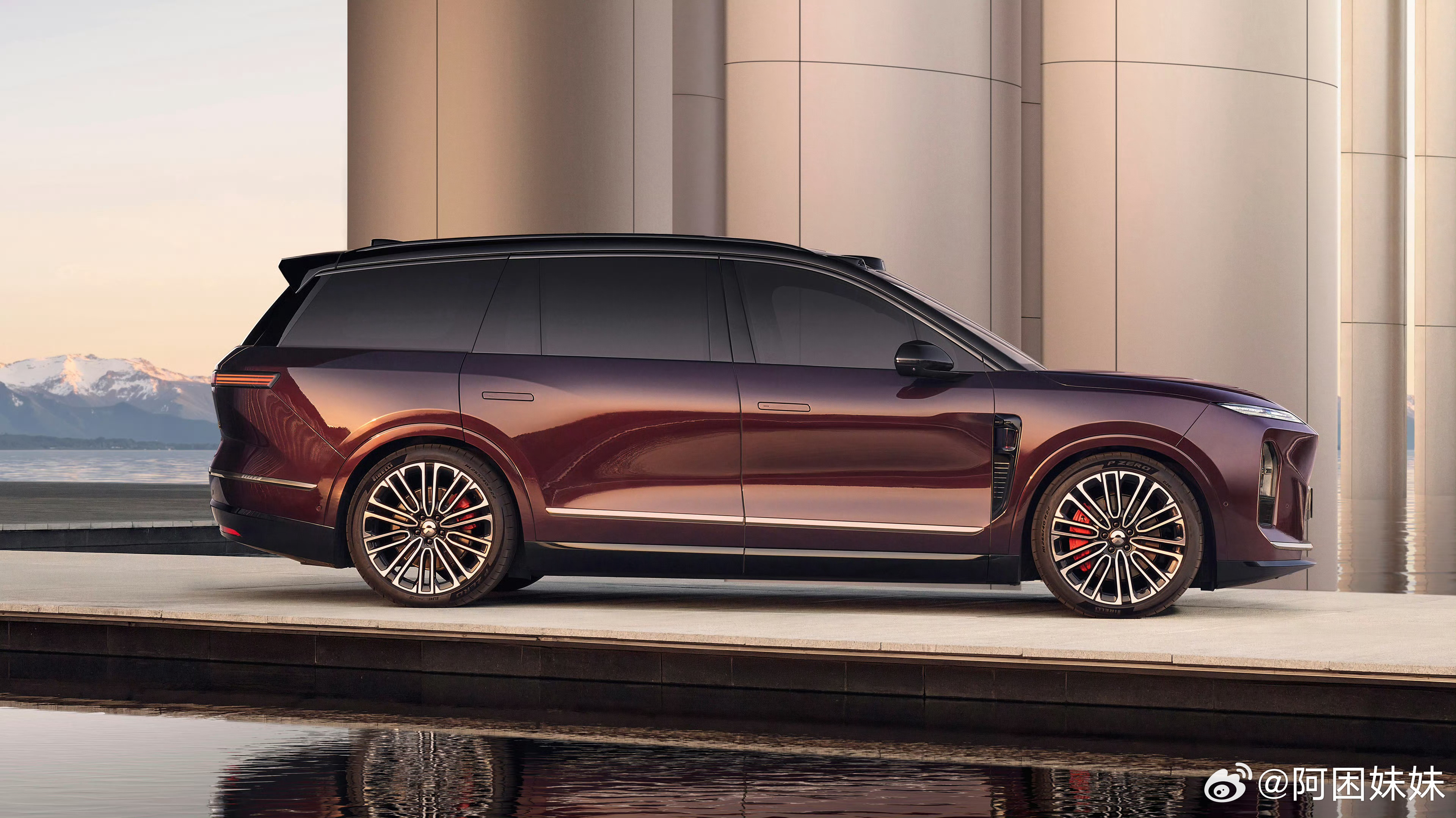 蔚来ES8全新配色M42星云红,这个颜色配大型SUV刚刚好显得大气,红色也不太好调,饱和度高了显得沉闷,低了又太明艳,还得是这种