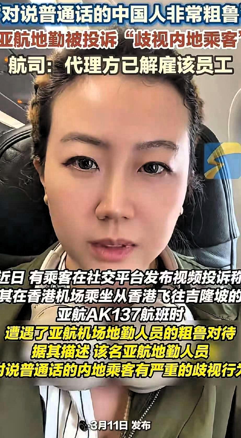 怒了!香港机场内地女士求助,竟遭地勤狂言:我忘了自己是中国人! 据报道,一位内地女士在机场身体不适,先申请终止行程,身体好转后希望恢复登机,这本是正常的服务协调事项,却遭到地勤人员态度粗暴、刻意刁难。对说普通话的同胞敷衍不耐烦,对外籍旅客却热情周到,明显的双重标准,让人难以接受。当旅客质疑为何区别对待时,对方不仅不反思,还出言不逊,甚至说出“忘记自己是中国人”这样伤害民族情感的话。 香港回归已近三十年,始终是中国领土不可分割的一部分。在自己国家的土地上,同胞之间理应平等相待、互相体谅,而不是区别对待、恶意歧视。说普通话是我们的权利,中国人的身份更应被尊重与认同。一个人无论从事什么岗位,都不能忘记自己的身份与根源,更不能用偏见伤害同胞。 服务行业讲究公平与专业,态度可以温和,但不能双标;工作可以忙碌,但不能失礼。把情绪发泄在旅客身上,用国别与语言划分对待标准,既不符合职业规范,也违背公序良俗。 事件发酵后,涉事员工已被所属公司解雇,这一处理符合公众期待,也表明歧视同胞、伤害民族情感的言行不会被容忍。 出门在外,大家都希望被公平对待。香港的繁荣离不开国家的支持与同胞的守望相助。尊重不分地域,文明不分语言,同胞之间多一份理解、多一份善意,旅途才会更温暖。