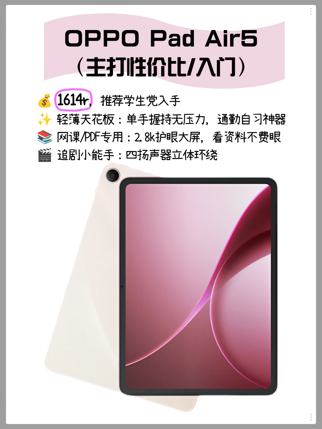 1️⃣ OPPO Pad Air5 | 入门天菜