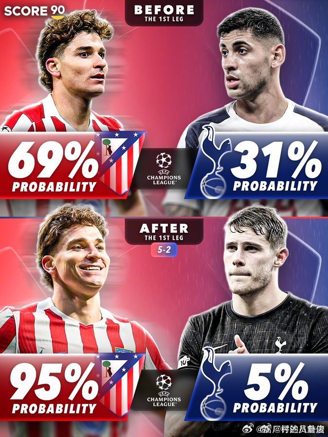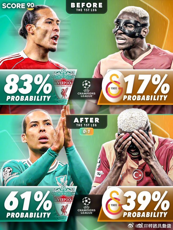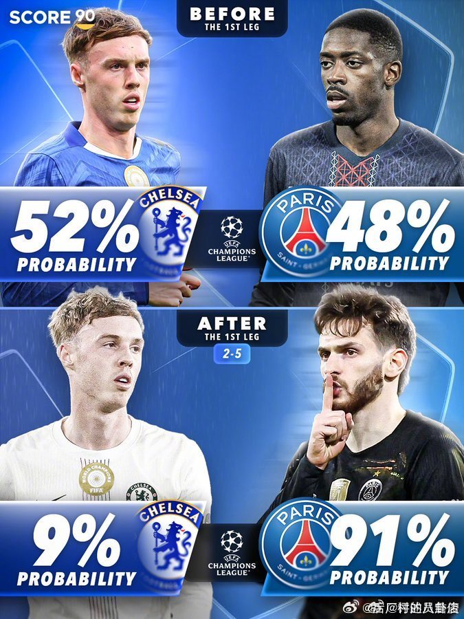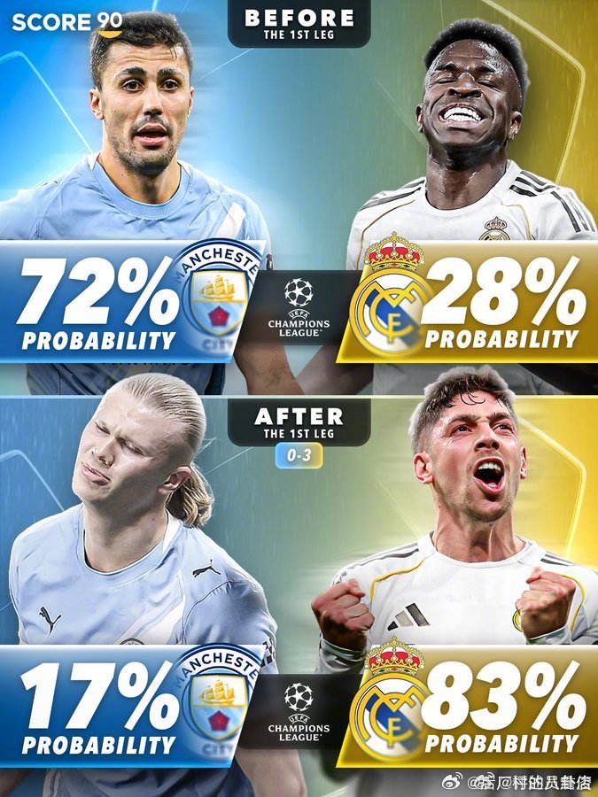 欧冠16强战首回合前后,英超六队的晋级可能性对比。能有两队晋级八强么? cr:
