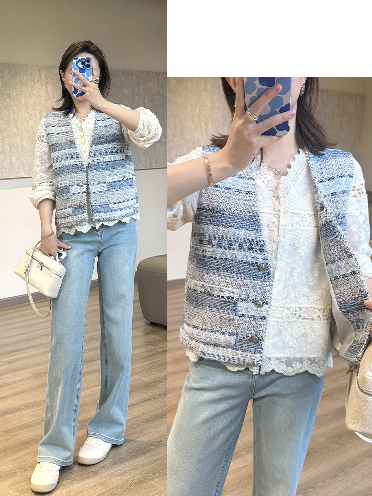 优雅气质穿搭,浅蓝色套装搭配自然妆容,尽显温柔魅力。