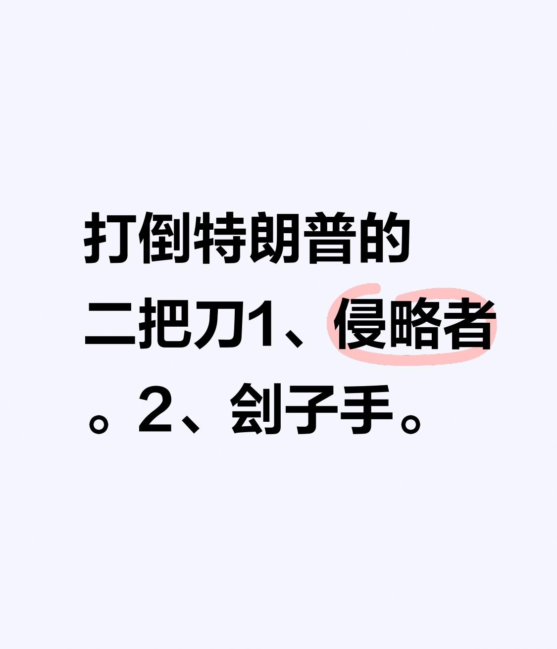 打倒特朗普的二把刀 1、侵略者。 2、刽子手。