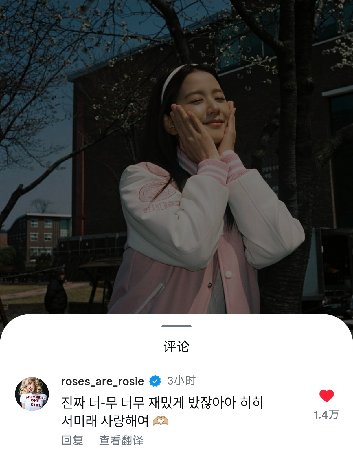 260312 Rosé评论了Jisoo的帖子🐰🐿️“说真的,真的太好玩了哈哈哈我爱你徐美莱🫶🏼”哎一古🫂🫂