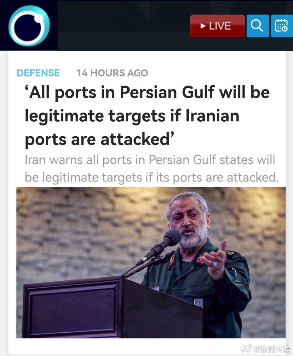 美伊以冲突 “如果伊朗的港口遭到攻击,那么波斯湾的所有港口都将成为合法攻击目标。”