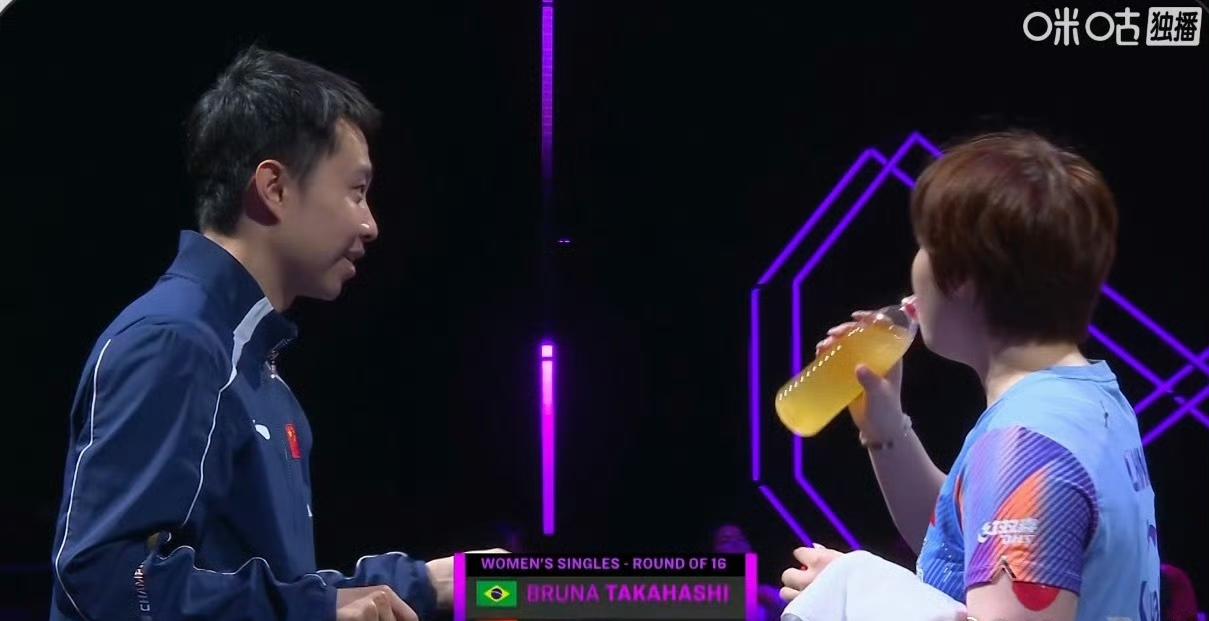 蒯曼🇨🇳VS高桥·布鲁娜🇧🇷! 嗯嗯,记住了,这个是雨果🇧🇷媳妇——高桥布鲁娜[捂脸]! 这是2026WTT冠军赛重庆站女单1/8决赛。 两人仅有一次交手,还早在2019年国际乒联葡萄牙挑战赛上,蒯曼🇨🇳3-2险胜。 不过蒯曼已不是之前的蒯曼,高桥布鲁娜也不是之前的高桥,相比来说,蒯曼进步更大。 这不,第一局蒯曼🇨🇳11-4先胜高桥·布鲁娜🇧🇷 ! 场边指导是于子洋指导,局间在场边笑嘻嘻的和蒯曼交流[笑哭]。 蒯曼继续加油[奋斗]!