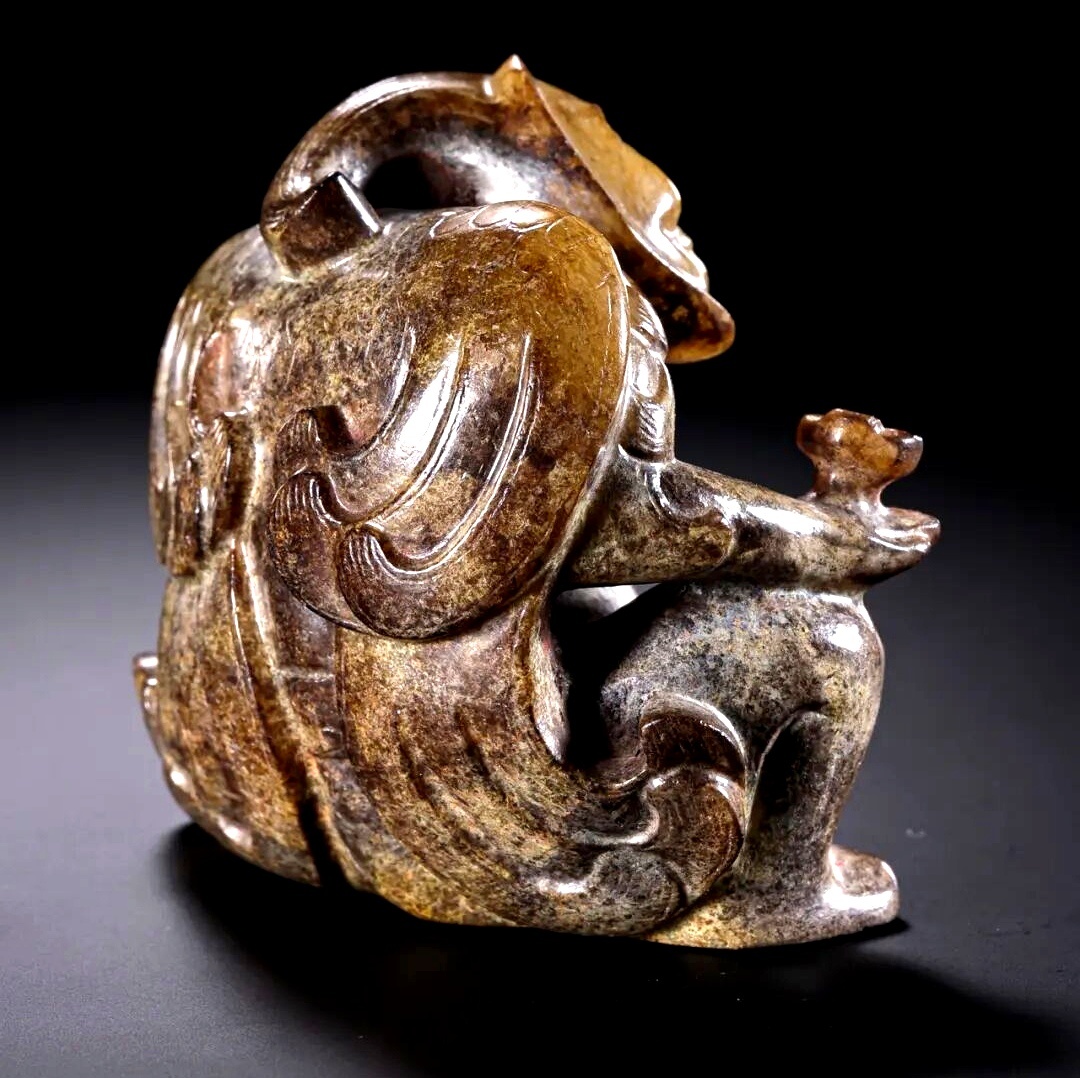 高古玉 汉代坐相羽人,背部生有翅膀…… 上海