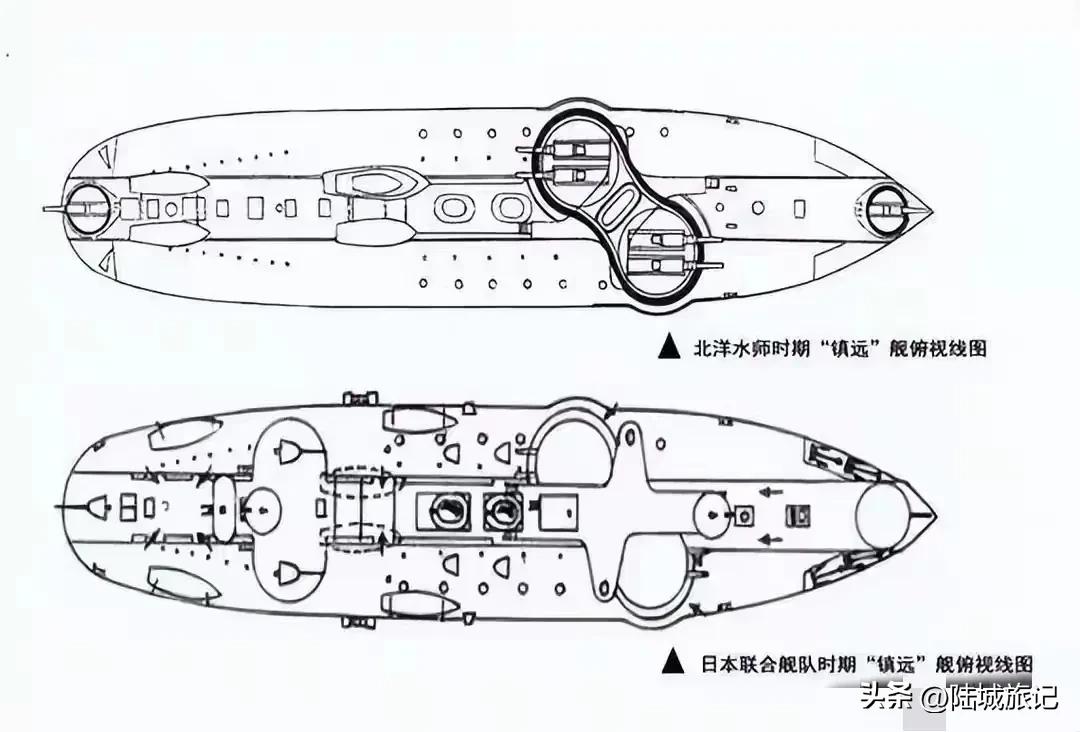 【“定远舰、镇远舰”改造设想方案】:在甲午海战中,定、镇两舰虽抗住数百发火炮攻击,然而也暴露了北洋舰队火炮射速慢,炮位少等缺点,不过原本已经要改装的计划由于当时战事紧急无法实现,导致北洋舰队带着未改装的遗憾匆忙上了战场,导致中国海军百年耻辱。 ①保留两舰305毫米主炮,加强炮盾防护能力或改造为半封闭炮盾。 ②拆除舰首舰尾两门150毫米架退炮,更换150毫米速射炮。 ③拆除原舰中后部的舰载鱼雷艇位置,改造增加炮位,设置为与舰首305毫米相似的炮位,不过设置为4门120毫米速射炮。 ④改造后的火炮数量为:305毫米口径火炮×4;150毫米速射炮×2;120毫米速射炮×4。(下期以“来远舰、经远舰”)