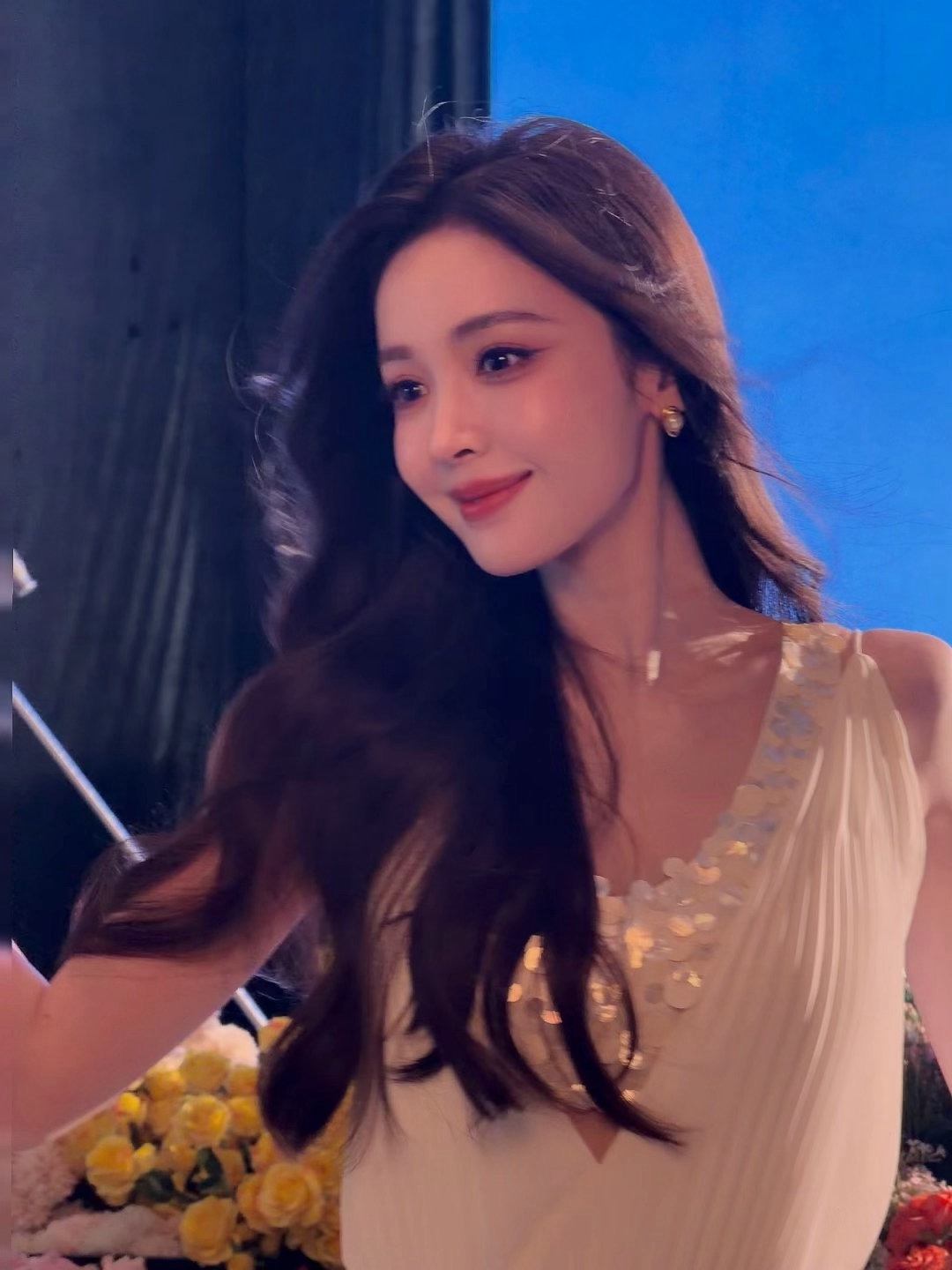 娜扎一转身春天到了 娜扎手捧鲜花清新明媚,一身白色亮片连衣裙春日感拉满,风吹发丝完全就是美神降临,爱上娜扎好简单