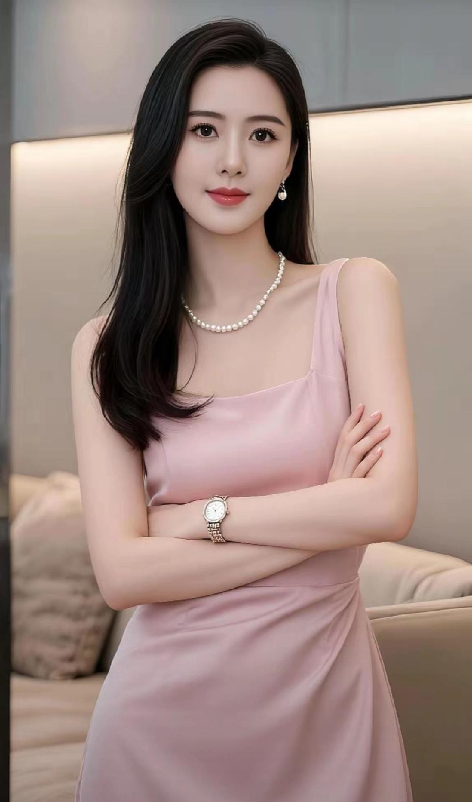 优雅气质,粉裙配珍珠,尽显温柔魅力!