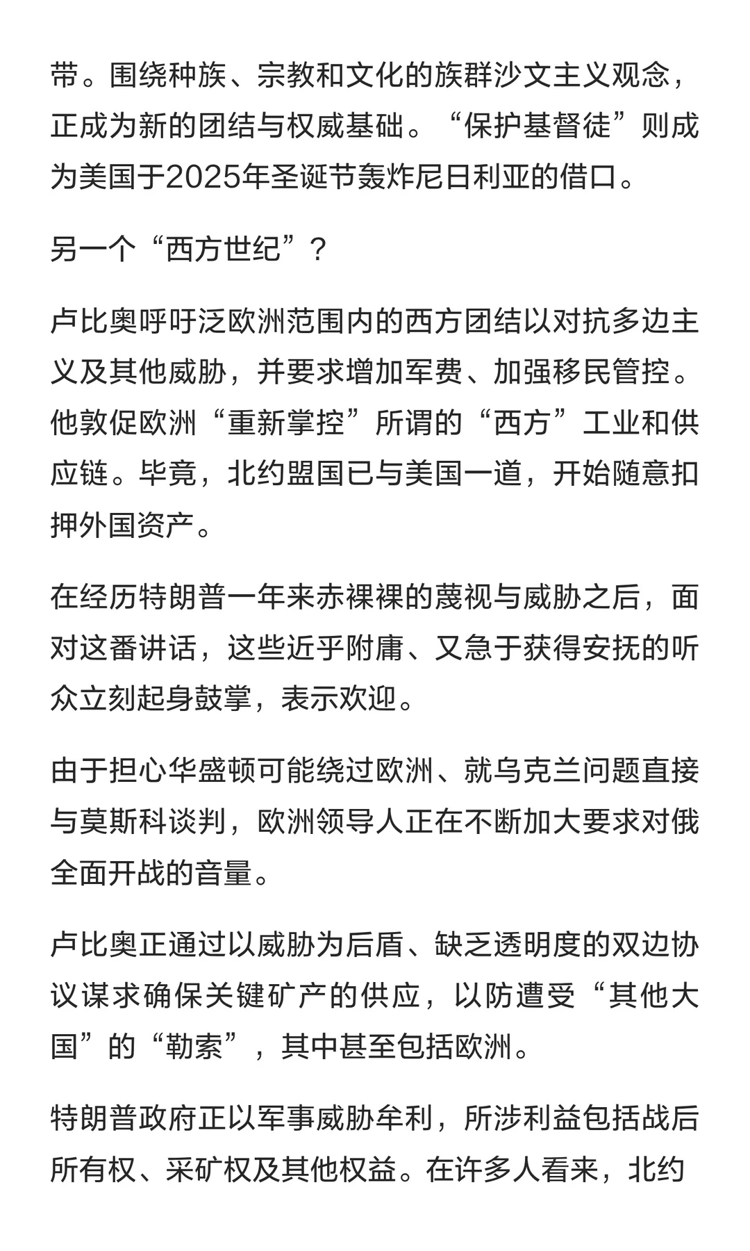 卢比奥用帝国怀旧情绪拉拢欧洲,对抗南方