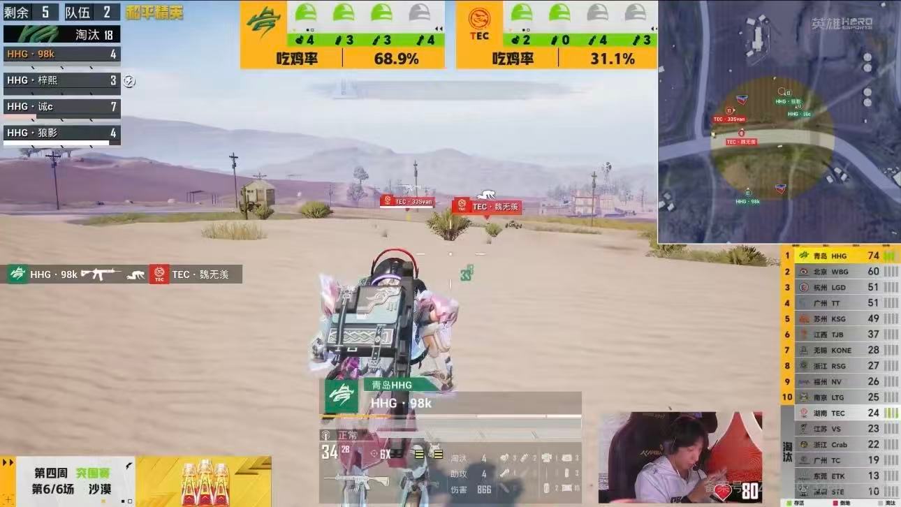 HHG沙漠再吃一鸡 状态火热越战越勇,HHG沙漠再吃一鸡,以积分第一晋级周决!