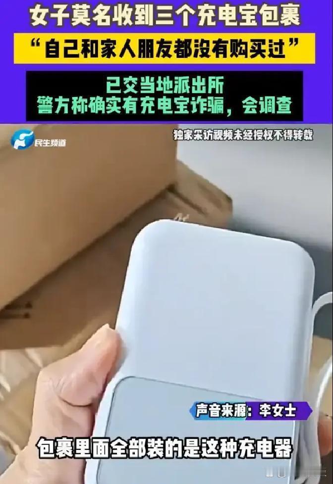 防不胜防!江西,女子在一天之内连续收到三个莫名其妙的快递,疑惑的是,三个快递全都是充电宝,女子越想越不对劲,在网上一搜,发现这很可能是个骗局,一旦插上充电可能就有麻烦,警方确认:确实有类似的诈骗方式 事发当天,李女士正在家里休息,手机里却接二连三蹦出三条取件码信息。她一头雾水地去驿站取回来,拆开一看,好家伙,三个包裹里装的都是充电宝,一模一样的款式,还贴心地配了手提袋和使用说明书。 看着眼前整齐摆放的三款充电宝,李女士心里一点都高兴不起来,反而越琢磨越心慌。自己这段时间根本没网购过这类东西,家人朋友也没说过要寄礼物,平白无故收到三份一模一样的物品,怎么看都透着一股诡异。她抱着怀疑的态度在网上搜了搜相关情况,一条条网友的真实经历让她惊出一身冷汗,不少人都遇到过同款匿名充电宝骗局,稍有不慎就会掉进坑里。 警方介绍,这类充电宝外表和普通产品没区别,内部却被改装过,藏着恶意程序。只要插进手机充电,就可能悄悄窃取手机里的通讯录、支付信息、验证码等隐私内容,骗子远程操作就能实施盗刷,让人防不胜防。骗子们正是抓住了不少人贪小便宜、觉得白送的东西不用白不用的心理,用盲发快递的方式广撒网,而这背后,往往还牵扯着个人信息泄露的黑色产业链。 我们平时收快递、填信息时稍不注意,隐私就可能被倒卖,给了骗子可乘之机。身边也有朋友遇到过类似情况,收到匿名小礼品后扫码加群,最后被骗走了不少钱。比起小小的充电宝,这种无孔不入的诈骗套路和泄露个人信息的乱象,才更值得我们警惕。 遇到陌生快递最稳妥的做法就是直接拒收,已经签收的也不要随意使用,更不要扫描上面的二维码。多一分谨慎,就能少一分被骗的风险。 各位读者你们怎么看?欢迎在评论区讨论。