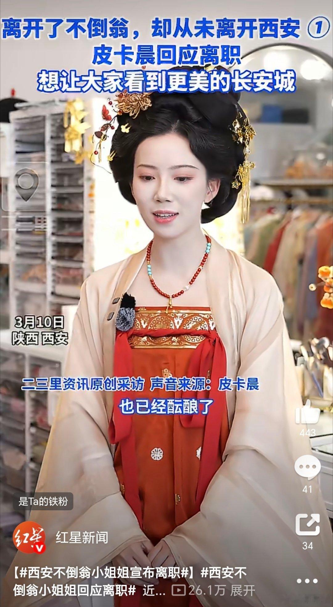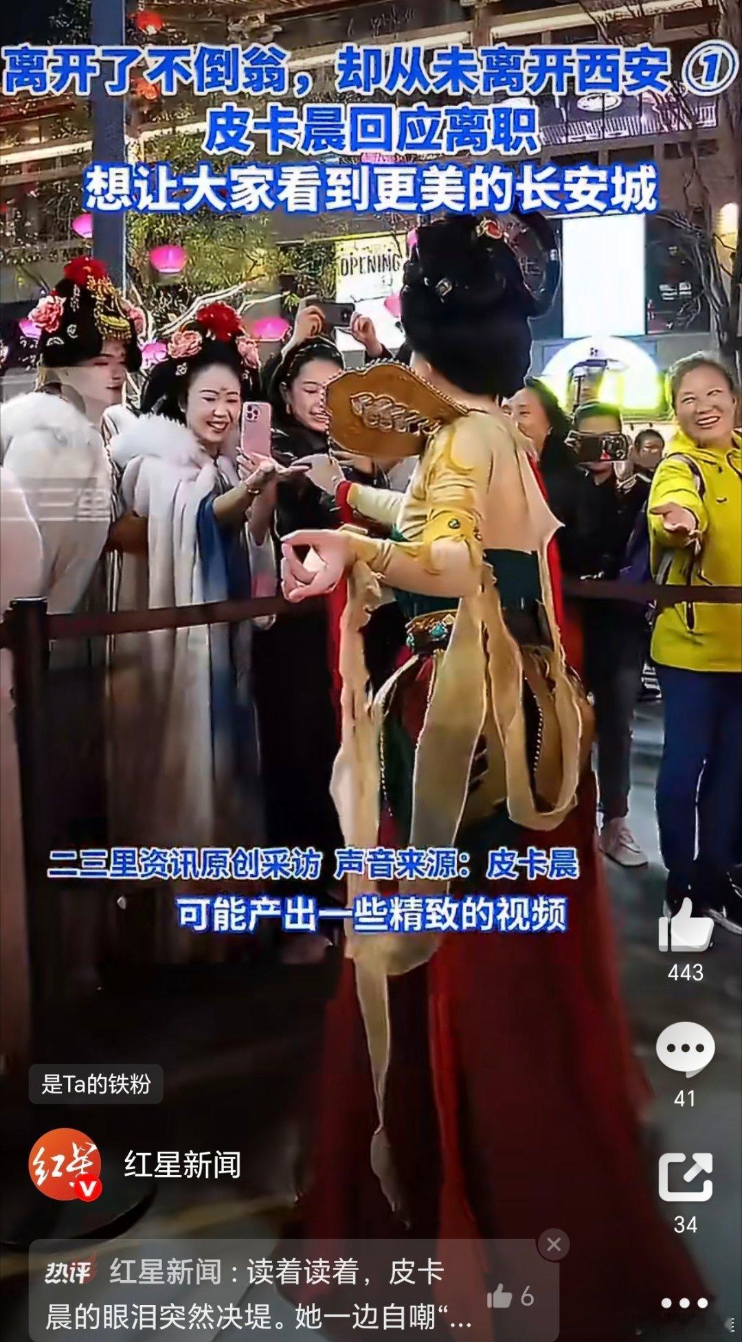 西安大唐不夜城的不倒翁小姐姐皮卡晨宣布辞职了,2019年短视频平台刚火起来的时候