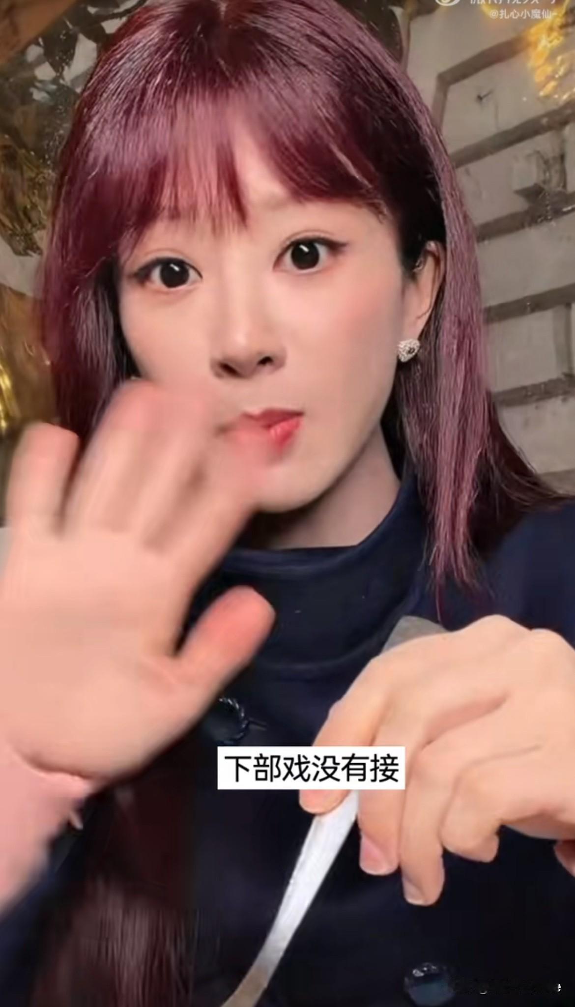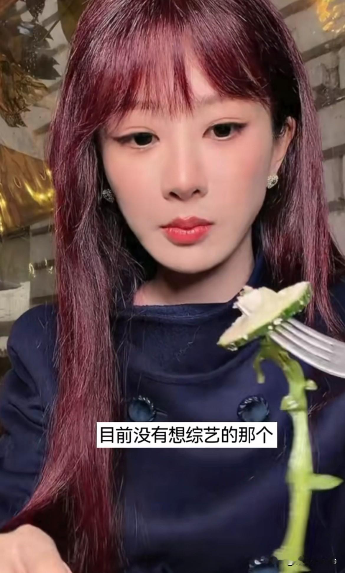 3月12日,杨紫吃饭直播,分享最新近况,直言下部戏没有接,真的还没有接! 因为想休息,综艺也没有接,目前也没有想接综艺的想法,单纯想拍完玉兰花开君再来休息一段时间,杨紫吃的沙拉,黄瓜生菜,染发因为在拍戏不能染发,拍完会考虑! 从杨紫摆手的动作可以看出,目前想休息的想法达到了顶峰,结合之前的直播,杨紫虽然没有接下部戏,但下部戏本子有在看在挑,因为计划休息一段时间,所以也不着急敲定,进组,开机,可以慢慢来!