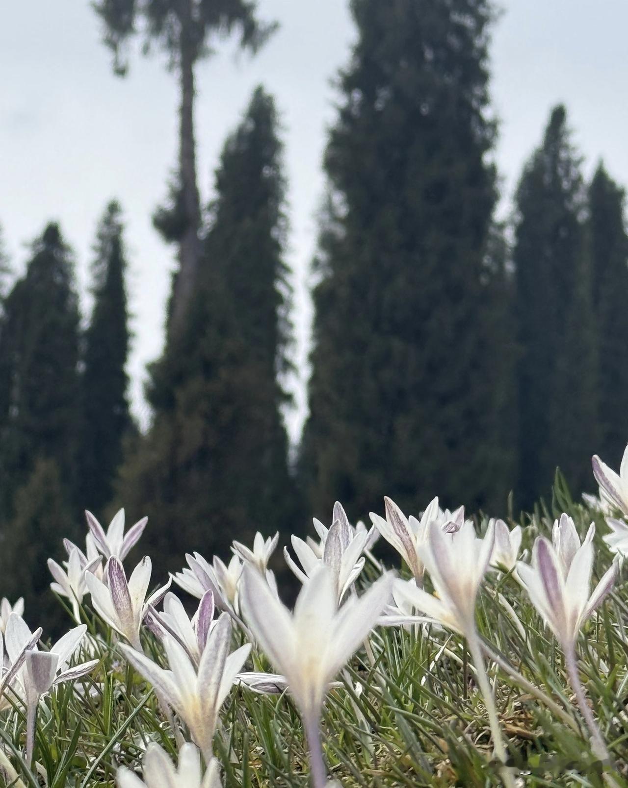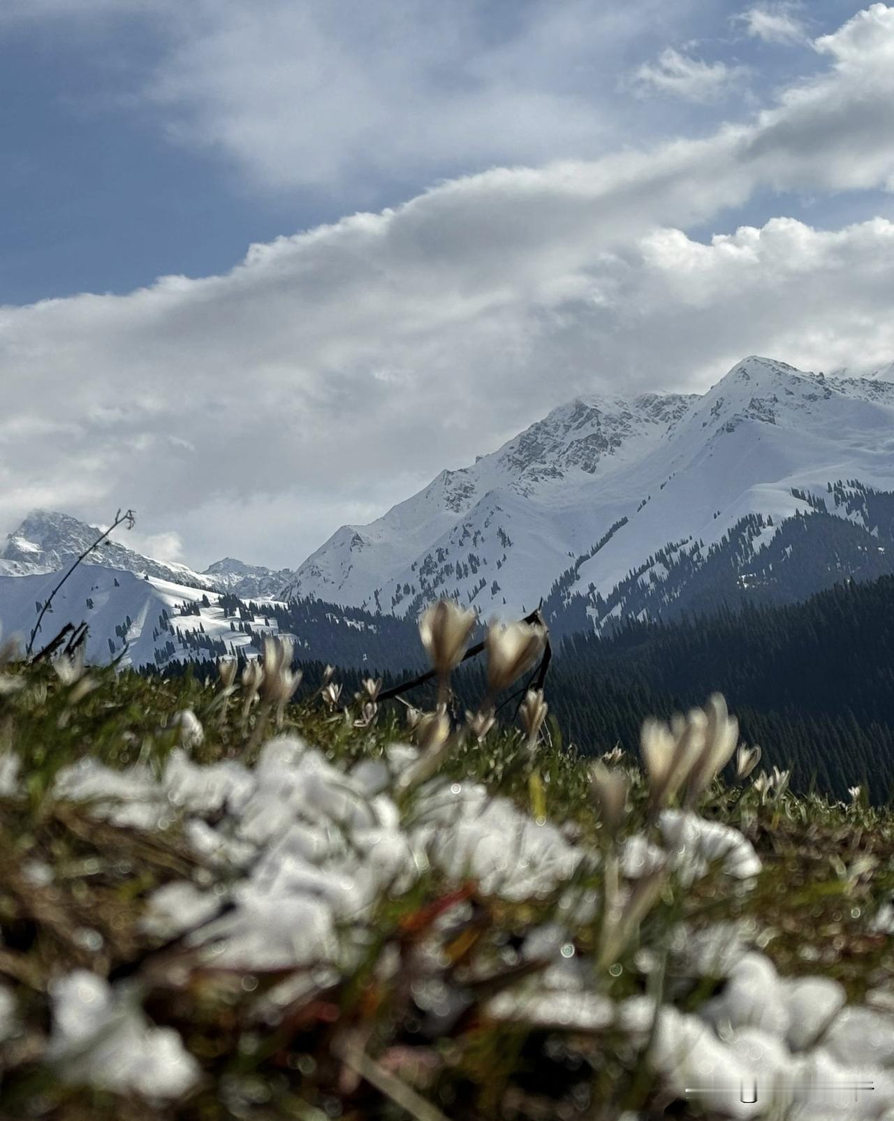 来新疆,赴一场顶冰花的春日之约 顶冰花,是春天写给雪山的滚烫情书💌 当远处的天山雪峰还裹着皑皑白雪,冰封的草原之下,生命已悄然苏醒。一朵朵娇小的顶冰花,顶着残雪破冰而出,用纯粹的白,将广袤草原铺成浪漫的花海,柔弱却坚韧地撞开新疆的春日之门。 漫步在微凉的草甸之上,清风裹挟着清冽又温柔的花香,扑面而来。抬头是终年不化的圣洁雪山,低头是漫山遍野的蓬勃生机,冰雪的冷峻与繁花的温柔碰撞,这般极致反差,美得让人失语。 原来新疆的春天从不是悄然而至,而是顶冰花拼尽全力,从冰雪里挣脱出的浪漫奇迹,这便是奔赴新疆的绝佳理由。