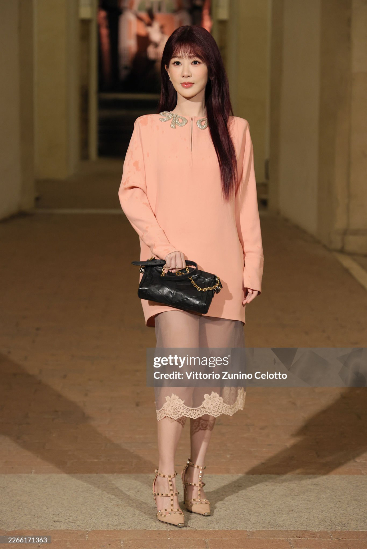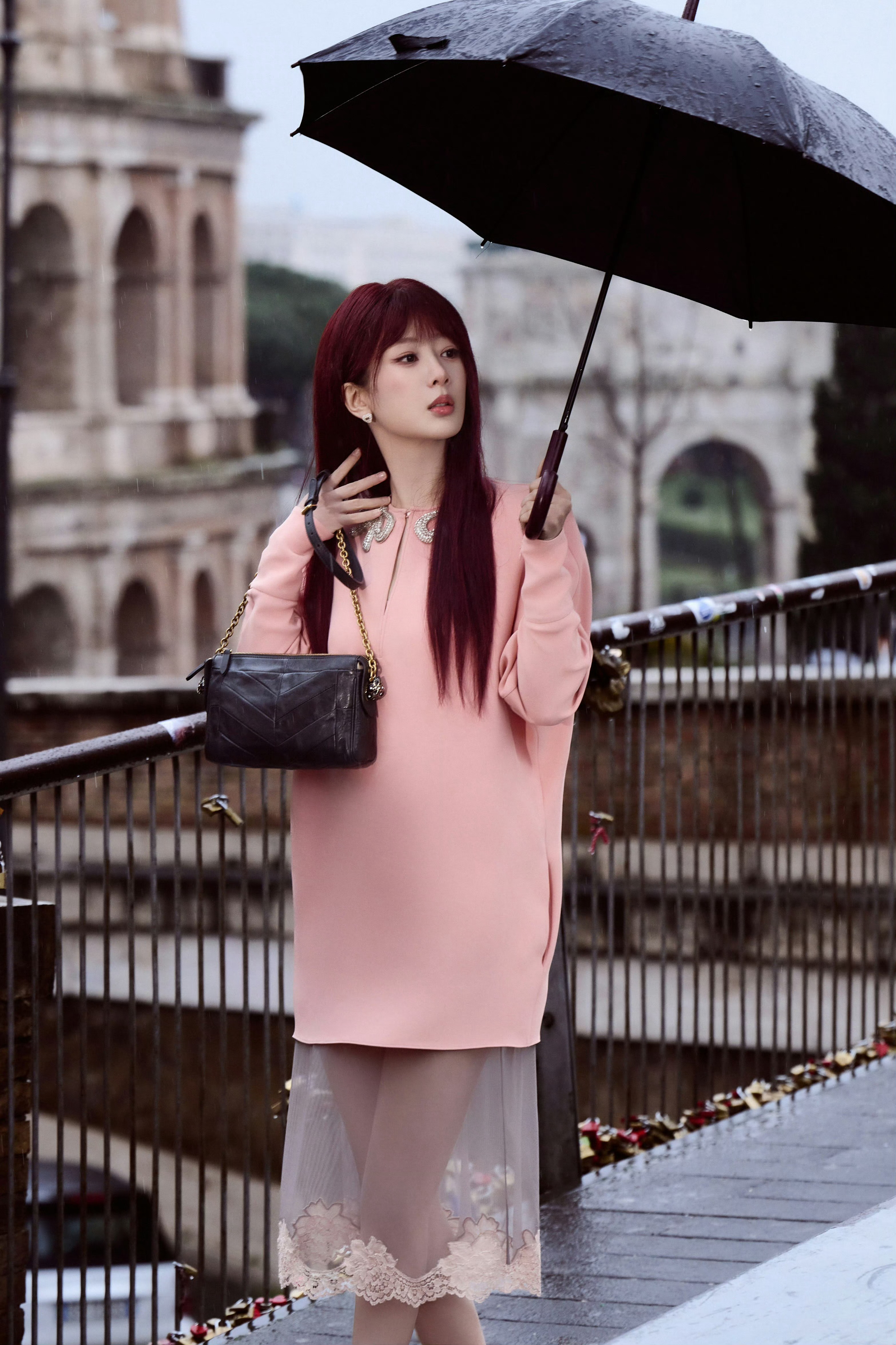 Valentino品牌代言人杨紫受邀出席2026秋冬时装秀,以一袭2026早秋系列粉色连衣裙亮相。柔美廓形与蕾丝裙摆交织,耀眼红发点睛其间,将东方柔美与意式优雅诗意融合。G社生图定格下她的完美好状态,雨雾漫过古城,她于罗马之畔,诠释华伦千金的浪漫新章~