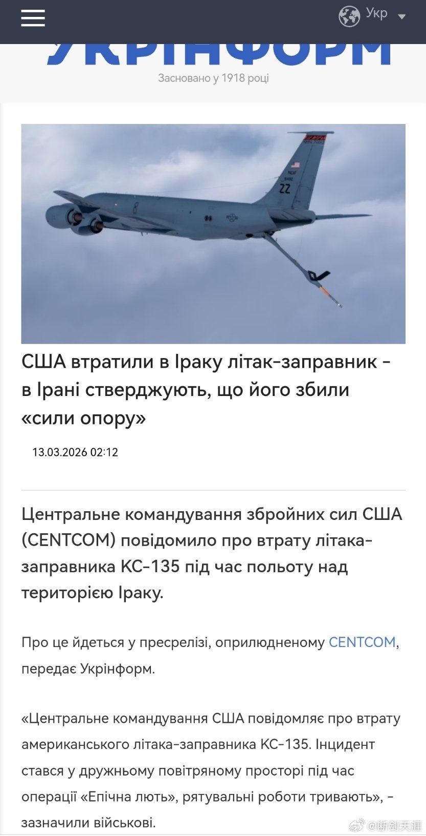 美国在伊拉克损失了一架加油机——伊朗声称该机被“抵抗力量”击落13.03.2026 02:12