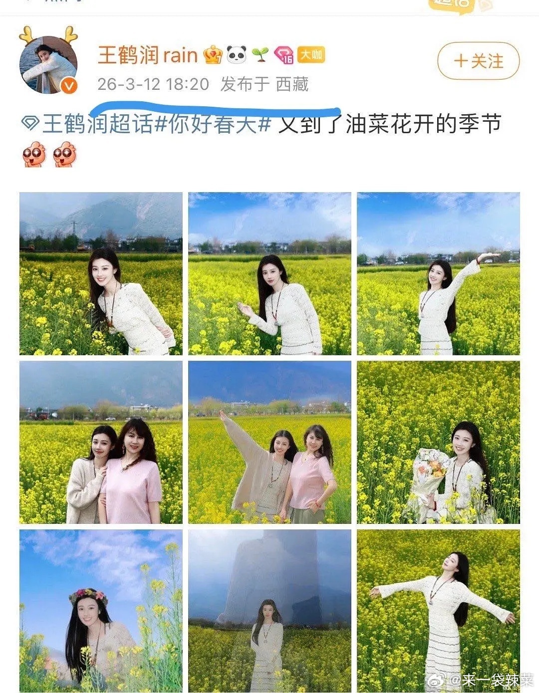 王鹤润吐槽王玉雯王鹤润评论区回复王玉雯古装不灵气,事后王鹤润道歉并回复是工作人员失误,王鹤润正在西藏录制综艺,吐槽IP在上海,王姐属实无辜