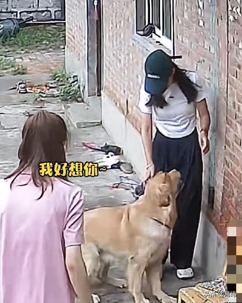 泪目了!一位小姐姐养了一只金毛狗狗,平时就特别宠爱它,狗狗也很依赖小姐姐,他们之间有着深厚的感情,前段时间小姐姐出门了,狗狗就特别想念小姐姐。这天,金毛正趴在地上休息,而小姐姐的弟弟妹妹正在给狗狗梳理毛发。 突然狗狗起身朝院子外跑去,小姐姐的弟弟妹妹都百思不得其解,不知道这狗狗是怎么了,于是就跟上去看。结果在拐角处看了令人泪目的一幕,原来狗狗是闻到了它主人小姐姐的气味了,在拐角处看到前方的小姐姐,它直接飞奔过去抱住了小姐姐,它特别开心,狗狗的世界很小,主人占了一大半!