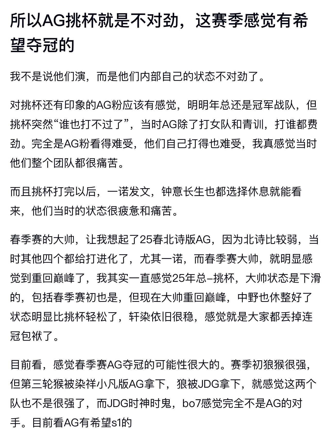 kplk吧热议 所以AG挑杯就是不对劲,这赛季感觉有希望夺冠的