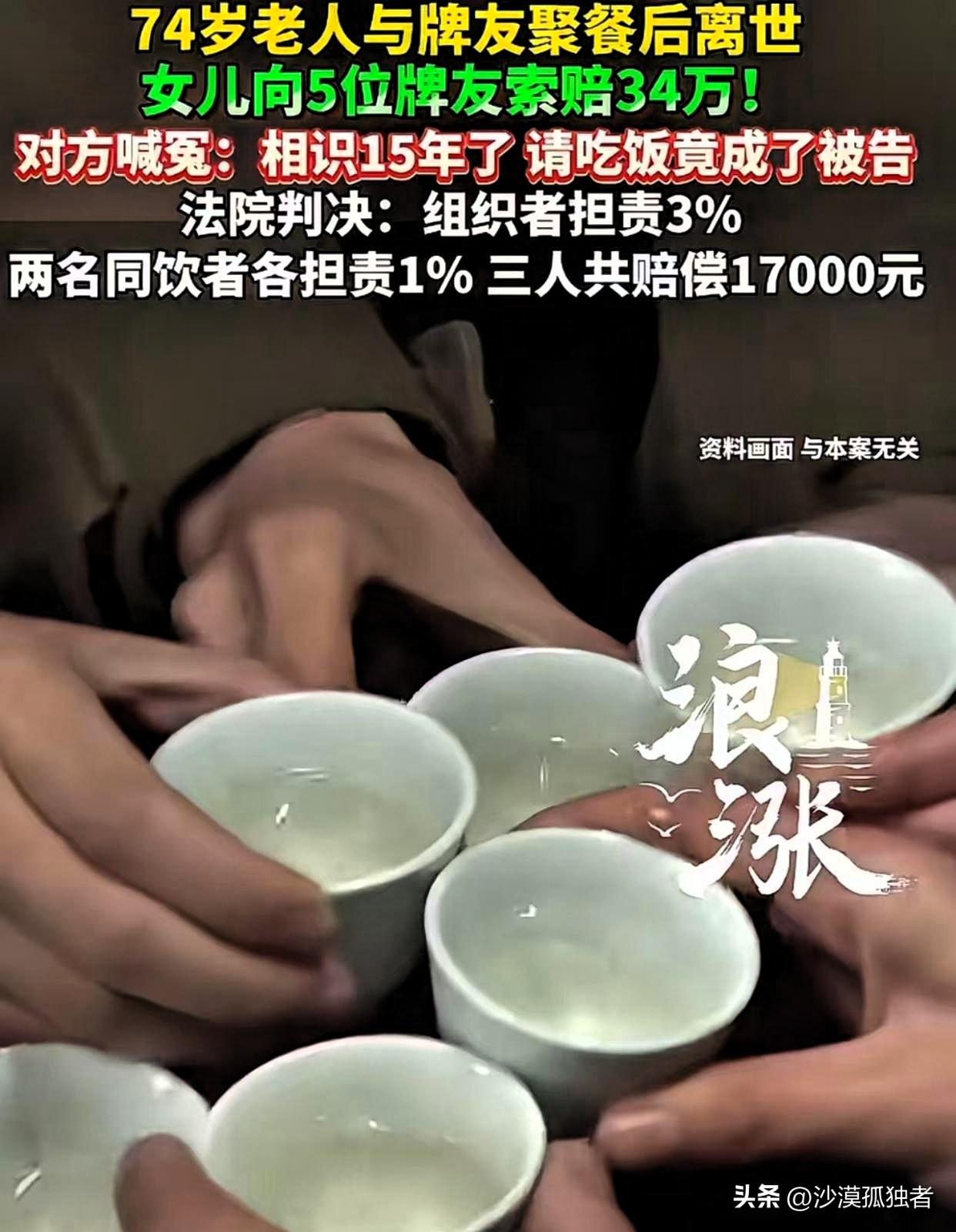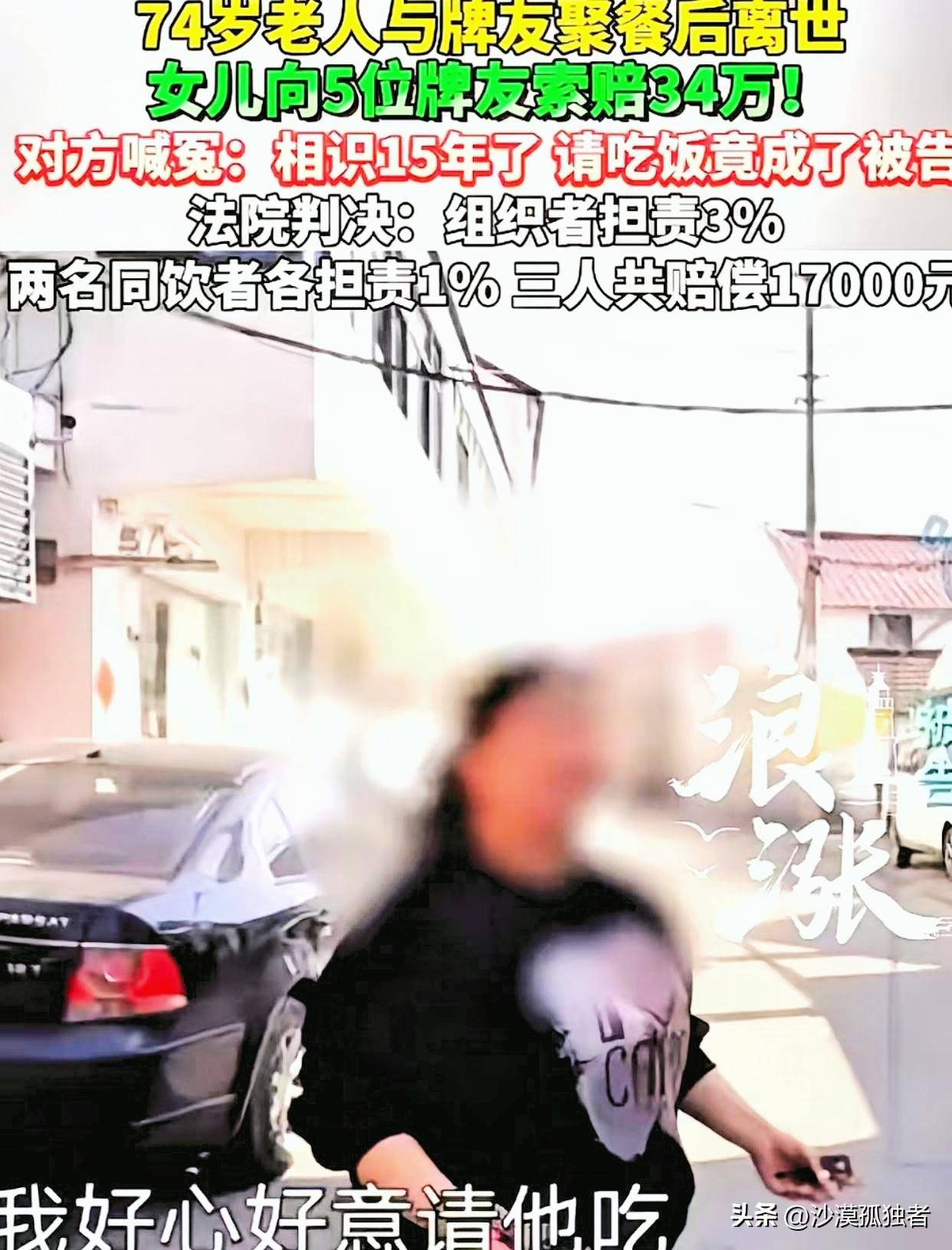 上海,74岁老汉到牌友家中聚餐,席间,5位牌友均与老汉相识已有15年,感情非常好,几人共饮了一瓶白酒。完事后,有人提议去玩几把,大家一拍即合,老汉也跟着去了。谁知,刚走到棋牌室门口,老汉脚下一滑,摔倒在地。 几人见状吓坏了,赶紧叫了救护车,并将其送往医院。最终,抢救无效,不幸离世。事后,老汉女儿认为,如果父亲不去参加聚餐,人还活的好好的!一气之下,将5位牌友告上法庭,索赔34万元。 牌友委屈的说:我好心好意请他吃饭,每次来都热情招待,吃了还被你告!法院调查后,发现这样一细节,判决很意外。 这起纠纷里,双方其实都觉得自己满肚子委屈。女儿张女士的委屈,是眼睁睁看着老爹出了门就再也没能回来,那种“如果当初”的念头,像根刺一样扎在心里头拔不出来。 她指控老友们三大过错:没把人安全送到家、明知喝醉了没看好、出事了还耽误了两小时抢救。甚至跑到警局调了监控,才发现老爹倒下的地方是棋牌室门口,根本不是朋友嘴里说的“送到了家”,这种被欺骗的感觉,更加重了她的愤怒。 可另一边,几个头发也花白的老友更是觉得冤枉。聚的是老感情,喝的是小酒,席间还劝着老张少喝点,谁能想到一顿饭吃出了人命官司? 他们反复强调,是老张自己兴致高,非要跟着去打牌,结果脚底下打滑出了事,救护车也是立马就打了,根本不存在见死不救这一说。组织饭局的赵女士那句话说得挺心酸:“每次都把他当亲哥哥待,现在人没了,我还成了被告。” 法院审理的时候,刨开情绪看证据,几个关键细节慢慢浮出水面。老张确实喝醉了,走路已经摇摇晃晃。 老友们骑电瓶车把他带到了棋牌室门口,并不是送回家,这几个人也坦言,他们根本不知道老张家具体住哪儿。 至于那“耽误的两小时”,法院一查记录,晚上7点10分摔倒,8点15分人就已经到医院了,这个时间卡得合情合理,造谣的事儿不攻自破。还有两位提前离场的阿婆和压根没去棋牌室的陈先生,因为不在事发现场,直接排除了责任。 这件事儿最让人感慨的就在这里。十五年的交情,一瓶白酒的量,一场本应尽兴的牌局,最后变成了一纸冰冷的判决书。法院说得很明白,老张自己是成年人,七十好几还喝到腿软,得为自己的命负九成五的责任。 但那三个把他送到棋牌室门口的老友,眼睁睁看着一个醉酒的老人自己走路,没伸手扶一把、没拦一下,确实存在照顾上的疏忽,组织饭局的赵女士担3%,另外两个陪着去棋牌室的各担1%,加起来赔了一万七。 说实话,这一万七,赔的不是命价,赔的是那几步路。法院想传递的意思大概是:朋友聚会喝酒是情分,但把人喝醉了,照顾到安全是责任。 哪怕关系再好,哪怕对方拍着胸脯说“我没醉”,只要他没安全进家门,这份情谊就有了法律上的重量。 我反倒觉得,这事儿里最难受的,可能就是那三个被判赔钱的老友。往后余生,每当想起老张,心里头都得压着这事儿:当初要是多扶一把,要是没提议去打牌,是不是结局就不一样?而张女士呢,告赢了官司,要到了说法,可老爹终究是回不来了。 人情和法理在这件事儿里缠得死死的。有人说这几个人倒了血霉,好心请客还惹一身骚;也有人讲法院判得在理,毕竟人命关天,哪能说走就走。 各位读者你们怎么看?欢迎在评论区讨论。 信息来源:综合新民晚报、新闻坊、案件聚焦等媒体报道