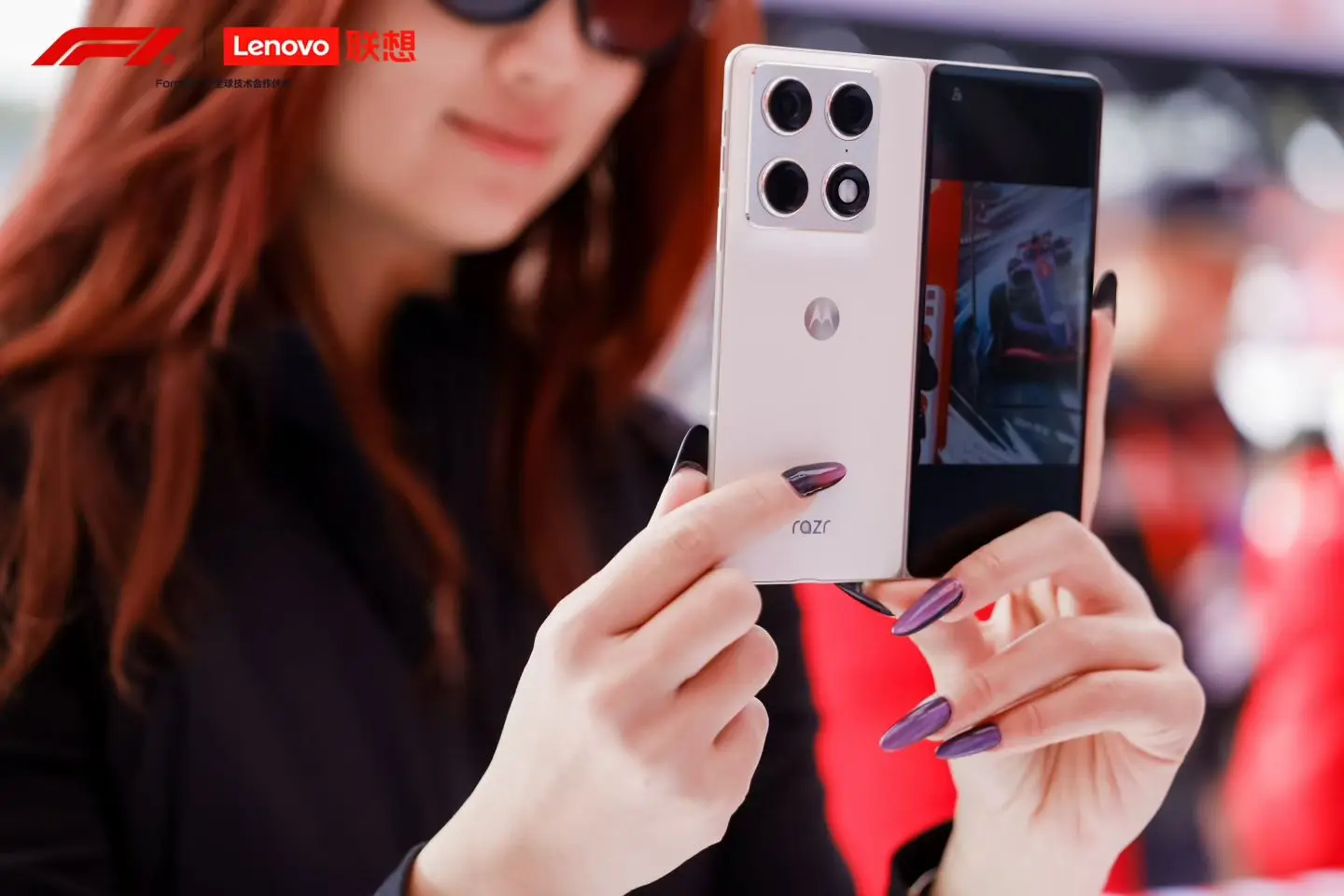 moto razr fold来了。联想moto razr fold折叠屏AI手机首秀亮相F1,真机颜值超高。