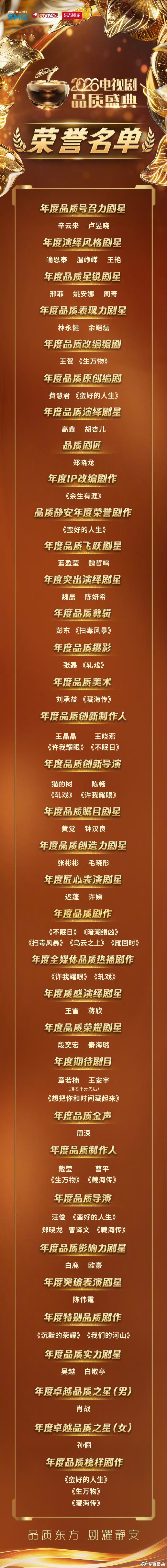 藏海传肖战品质大奖【来了!2026电视剧品质盛典获奖海报】近日,东方卫视2026