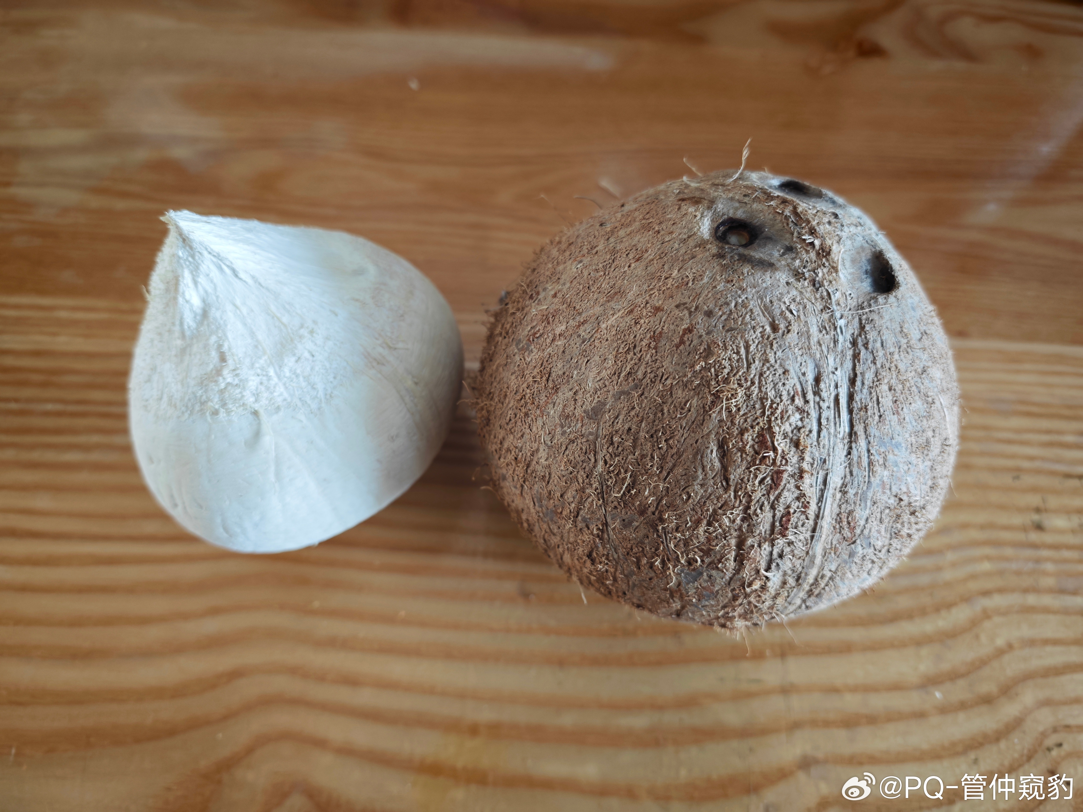 老椰子,图2椰汁更清爽一些,偶尔有酸的椰肉不能直接吃两个选择1.和嫩椰子一样,煮椰子饭吃2.砸开,把椰肉外层的死纤维削掉,做椰蓉或者加糯米,牛奶,红枣,葡萄干,核桃,煮椰子饭吃
