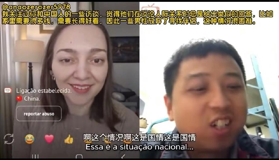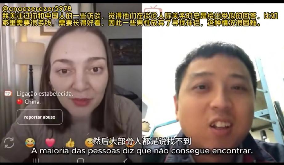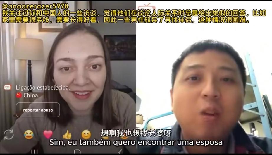 一名在南方打工的中国小伙在网上意外连线到一位西班牙的女网友,没想到的是他们随后简短一段聊天却引发了西班牙网友特别是女网友一边倒的同情,甚至有女网友直接说要要嫁给中国小伙! 原来是这么回事,小伙和西班牙女网友聊的很投机,于是他随口就问了一下对面的女网友结婚了没有,女网友说她已经结婚了,于是又反问中国小伙结婚了没有,中国小伙说自己已经35岁了,还没有结婚,而且小伙话语间还流露出了自己这辈子都可能找不到老婆的悲观心情! 这下可把看视频的西班牙网友们搞的不淡定了,因为小伙长的也不丑,而且性格温文尔雅还努力工作,况且中国人口这么多,怎么会找不到老婆呢? 随后中国小伙给出了解释,原来在中国在小伙爷爷爸爸那一代人开始,大家都喜欢生男孩不喜欢生女孩,所以到了小伙这一代女孩子就比较少了,现在在结婚方面中国女孩的选择权多了,女孩的地位自然就更高了,所以像小伙这么普通的打工人想找个老婆难度很大!