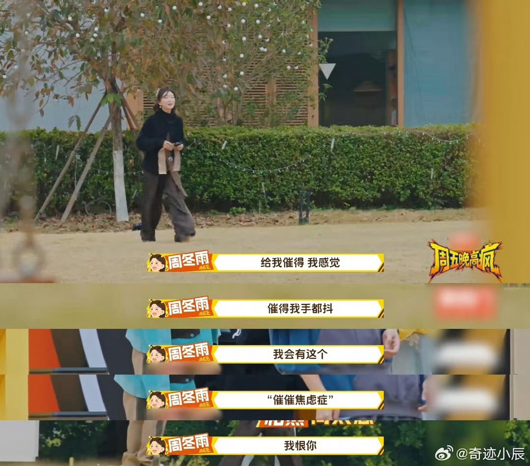 周冬雨说平生最恨被人催周五晚高疯完全是被催急了的我本人!周冬雨直言最恨被催,当场崩溃吐槽,真实到像在装监控!