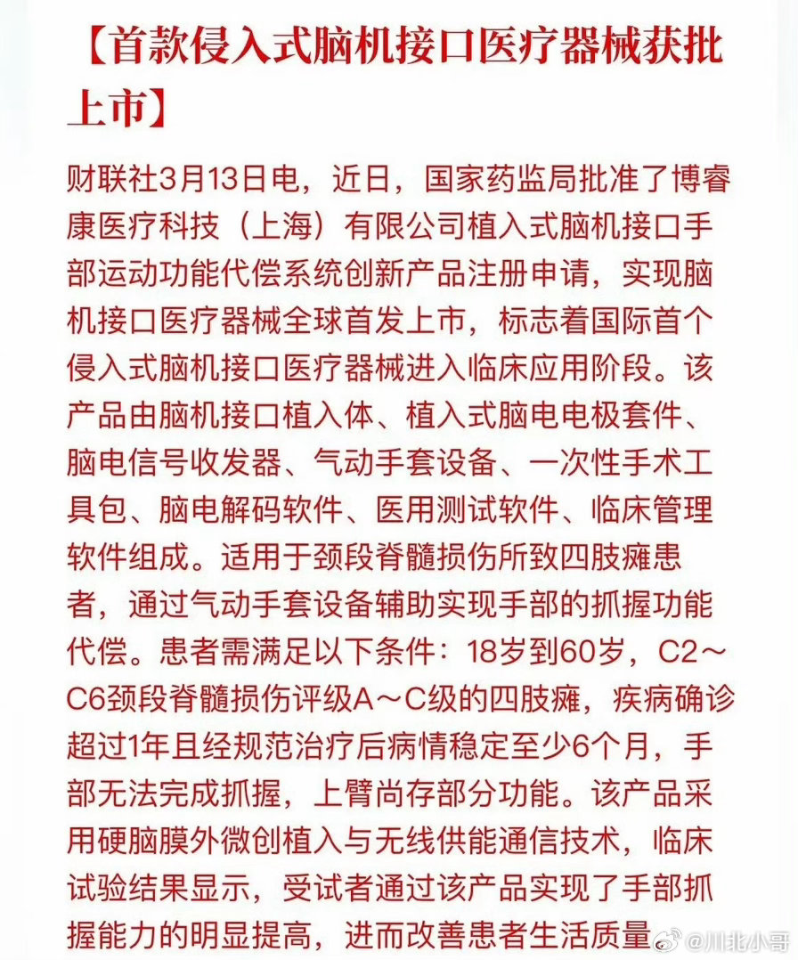 首款侵入式脑机接口医疗器械上市这一波就看脑机接口起飞得了不?首款侵入式脑机接口医疗器械上市