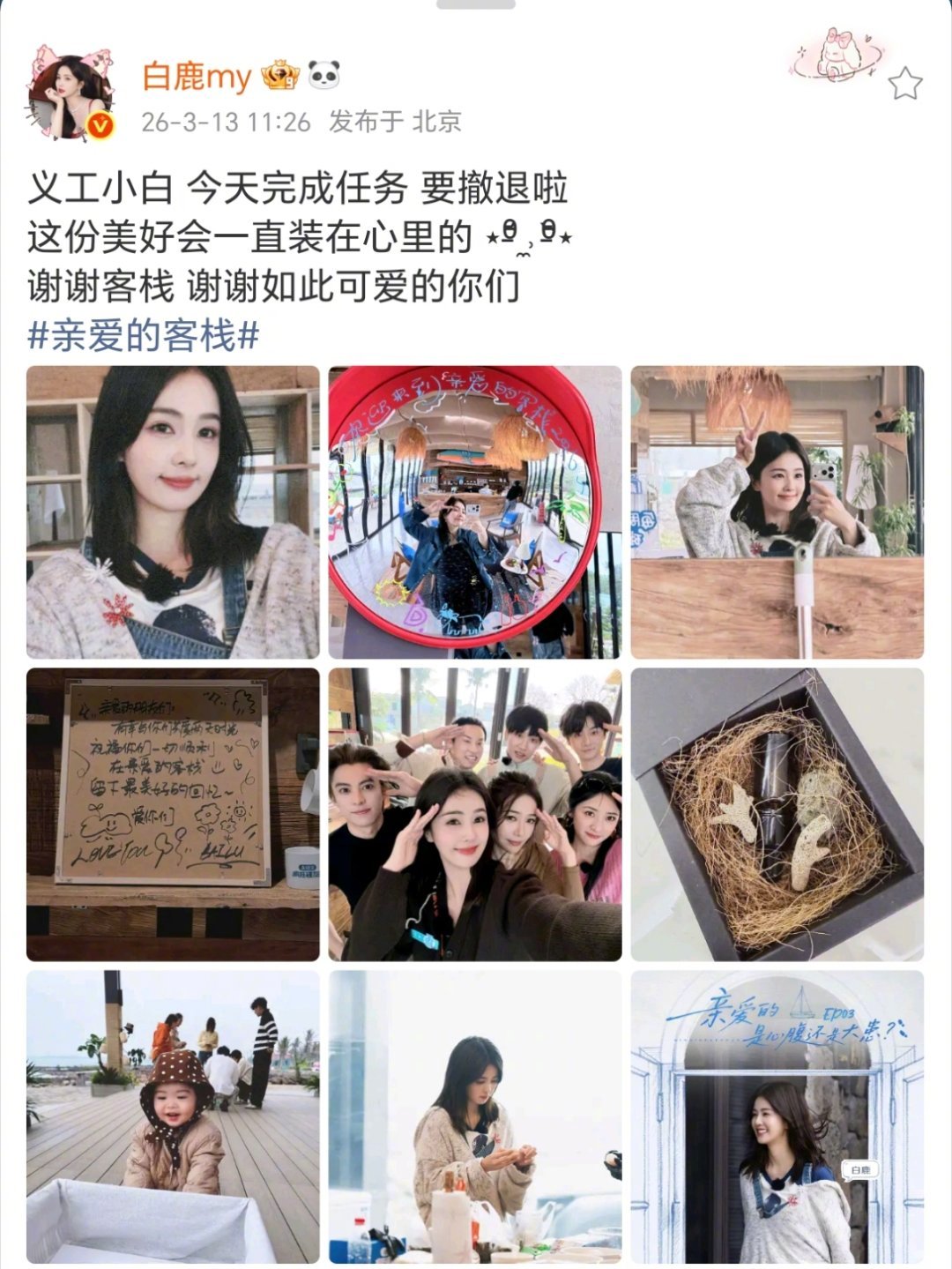 白鹿谢谢客栈亲爱的客栈白鹿真的好适合这种慢综啊 感谢义工小白给我们带来了很多快乐~ 能不能以后多多参加这种综艺啊 ⋆ᶿ̵᷄ ˒̼ ᶿ̵᷅⋆