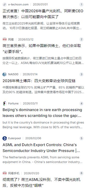 都以为稀土管制能按住荷兰,没想到人家反手就把中低端DUV光刻机也禁了,连老设备维修都卡脖子,这波操作看着够刚,实则更像慌不择路的孤注一掷。 麻烦看官老爷们右上角点击一下“关注”,既方便您进行讨论和分享,又能给您带来不一样的参与感,感谢您的支持! 最近这段时间,全球半导体圈子里的风向,那是真叫人看得眼花缭乱。本来大家都以为,咱们手里握着稀土这张王牌,稍微收紧一下,对面怎么着也得掂量掂量。可谁能想到,荷兰那边的反应居然这么快,甚至有点不计后果。就在大家都觉得这事儿还能有商量余地的时候,荷兰政府直接甩出一记重拳:不仅把稍微旧一点的DUV光刻机也给禁了,连带着那些早就在厂房里转了十几年的老设备,售后维修服务都要一刀切断。 这一招确实够狠,也出乎很多人的意料。以前咱们总觉得,你新机器不卖给我,那我总还能维护好现有的生产线,慢慢磨技术。现在荷兰政府由首相肖夫直接拍板,新规一出,等于把这条路也给堵死了一半。那些老设备一旦出点毛病,没了原厂的专业维修和备件供应,运转效率肯定会受影响 。可咱们要是反过来琢磨一下,荷兰这波操作,表面上看是在美国那边持续施压下的强硬表态,是给拜登政府递交的投名状,但细品之下,这更像是一场慌不择路的孤注一掷。 为啥这么说?因为荷兰人算盘打得再响,却忘了一个最基本的现实:你家那台印钞机——阿斯麦(ASML)的光刻机,心脏里头用的永磁体和一些关键精密部件,原材料几乎都得指着中国供应。咱们国家在去年十月出台的那个“0.1%含量规则”,当时很多人可能没太当回事,现在看是真戳到肺管子了。这个规则说得明白,甭管你在哪儿生产,只要产品里用了哪怕千分之一来自中国的稀土相关物项,想往外卖,就得先过中国商务部这道关 。 这一招恰恰打在了荷兰人的七寸上。别看阿斯麦平时牛气冲天,一台机器卖几亿欧元,可它对咱们稀土供应链的依赖程度高得吓人。根据业内评估和市场数据,他们仓库里囤的那些关键材料,满打满算也就够维持大约八个星期的生产 。这是什么概念?就是说如果咱们这边审批稍微卡一卡,或者真的一狠心断了供,两个月后,阿斯麦的生产线就得干瞪眼。有分析算过一笔账,真走到那一步,他们的月产能可能直接暴跌三成,一年的损失轻轻松松超过三十亿欧元 。这种损失,搁哪个上市公司身上都得肉疼半天。 所以说,荷兰政府现在这种“杀敌八百,自损一千”的打法,看着刚烈,实则暴露了内心的焦虑和底牌的匮乏。他们一边迎合美国限制中国芯片发展,一边又得求着中国别断了工业的粮食,这种两头不讨好的日子,过得确实憋屈。咱们实施稀土管控的初衷,其实从来不是为了专门跟谁置气,也不是为了彻底卡死谁。咱们的目的很纯粹,就是保护自家这点宝贵的战略资源,维护产业链的安全 。毕竟,全球超过90%的稀土精炼产能都在咱们手里,这种主导权决定了咱们有资格也有能力,在别人不讲规矩的时候,做出精准的反制 。 说到底,这场你来我往的较量,早就超出了简单的“你禁我的光刻机,我断你的稀土”这种买卖范畴。它本质上是全球半导体产业链话语权的重新洗牌。荷兰人越是这么不管不顾地封锁,越说明他们害怕中国自主研发的速度。现实也确实在印证这一点,封锁不但没摁住咱们,反而倒逼着国内光刻机研发和稀土深加工技术像坐了火箭一样往前冲。以前总觉得外国的月亮圆,现在发现,只要给咱们时间和市场,自己造的也没那么差。 这场博弈走到现在,谁都回不了头了。荷兰以为自己在制定规则,其实更像是被绑上战车的棋子,看似威风,实则慌得一匹。而对于咱们来说,不管外面风浪多大,手里有粮、心里不慌,把核心技术攥在自己手里,才是硬道理。