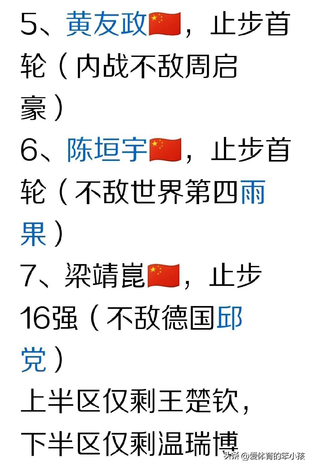 虽然重庆冠军赛的比拼当中,国乒球员主场作战,参赛人数相对众多。而且能进入参赛阵容的球员,也都算得上是世界知名高手或者正往世界知名高手位置前进的年轻潜力派球员。 不过在经历了前两轮的比拼,也就是男单8强全部产生之后,国乒男队整个团队还是损失大半,特别是整个上半区只剩下王楚钦一人作为赛会头号种子再次成为孤胆英雄,需要独守上半区,扛着压力和责任往前走。 而下半区当中,国乒球员的整体晋级形势也不容乐观。只有年轻的温瑞博一人在战胜世界排名第二的瑞典名将莫雷加德之后,锁定一个男单八强席位。这样整个国乒男队在有王楚钦、温瑞博、周启豪、向鹏、黄友政、陈垣宇还有梁靖崑7个人参赛的情况下,打到8强战之后,就已经只剩下上下半区各一人在独守半区了。 这样的一个还未完全结束的比赛结果,已经让球迷们有些失落,也为中国男乒在这个比赛当中的整体竞争力担心起来。 其实回看这些球员的晋级或者落败过程。我们会发现王楚钦当下确实面对不同风格的对手仍然会有一些起伏,在独守半区的过程中也经历了很多挑战。但整体上来说,他还是能在一些打的比较别扭或者相对困难的比赛当中,仍然能努力调整自己,通过日益增强的综合竞争力来提升自己取胜的几率,也确保自己不至于出现太多意外输球的情况,至少可以先稳住一个八强或者四强席位,然后在努力争取继续前进,目标冠军。 而温瑞博作为国乒年轻新生代当中的一个代表人物之一。近期即使也有一些让人摸不着头脑的外战失利的情况发生,但整体上来说,他已经多次把一些世界高手给斩落于马下,分站赛夺冠也让他竞争力还有比赛心理继续进步,这次更是在莫雷加德面前也实现了胜出,确实进一步展现实力,在中国男乒遇到困难越来越大的情况下,他的这种进步也算是一场及时雨,哪怕在后面不知道会走多远,但是对于温瑞博和中国男乒来说这仍然算是一种成功和进步。 不过相比较来说,周启豪和梁靖崑这两位已经算是国乒老将的球员,其实这次比赛表现的都是差强人意。 周启豪是直接输给了林昀儒,而梁靖崑在16进8的比拼当中也再次倒在老对手邱党的拍下,他已经连续三次在和邱党拼满五局的情况下,2:3遗憾输给对手,而且这次还是2:0领先的情况下遭对方逆转。可见梁靖崑除了受到伤病的困扰影响了技术之外,目前心态方面也比之前没有受伤的时候有下滑迹象,抗压能力和打困难仗的能力有所倒退。需要他在这方面做极大的调整。 而向鹏和黄友政包括陈垣宇这三位国乒相对年轻的球员。向鹏近期已经在两箱关键赛事提前出炉的名单中落选国乒参赛阵容,可见教练组对他的信任度已经有所下降。哪怕他的世界排名比较靠前,但确实在打世界顶级高手的连续性方面还有所欠缺。自身信心和抗压能力也有大幅提升空间。目前来看,教练组对他的支持和信任度已经大打折扣。 至于黄友政和陈垣宇这两位球员,则属于感觉上技术能力已经到了一定高度了,但是打一些关键仗还是会让人感觉缺乏一些有效的策略,或者说场上应变能力有所不足,看到机会的时候未必能真正把握住,打好了可能谁都能赢打不好也可能非常遗憾的就早早止步。遇到一些强手,即使能打出不错的发挥,但想笑到最后,却还是欠缺了一些打持久战和困难仗的韧性还有经验。 我们也希望这次比赛当中大家的这种发挥可以让国乒男队的教练组在看到问题的同时,仍能看到些许希望,同时找到未来带动球员们不断前进的方向。如果解决不好这些问题,国乒男队未来核心主力层的搭建就会变得越来越困难。 那么大家对于国乒男队这次参加重庆冠军赛比赛的7位球员到目前为止的整体表现有何看法和想法?期待朋友们给出自己的观点和看法。也让我们一起看看,仅剩下的王楚钦和温瑞博两位球员会在比赛当中到底走多远。
