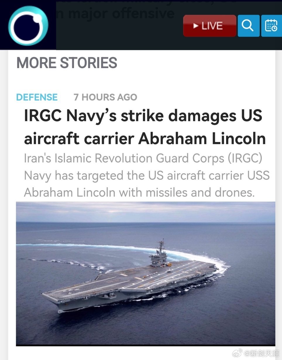 伊媒称林肯号航母遭袭后返回美国伊斯兰革命卫队海军的袭击致使美国“林肯”号航空母舰受损