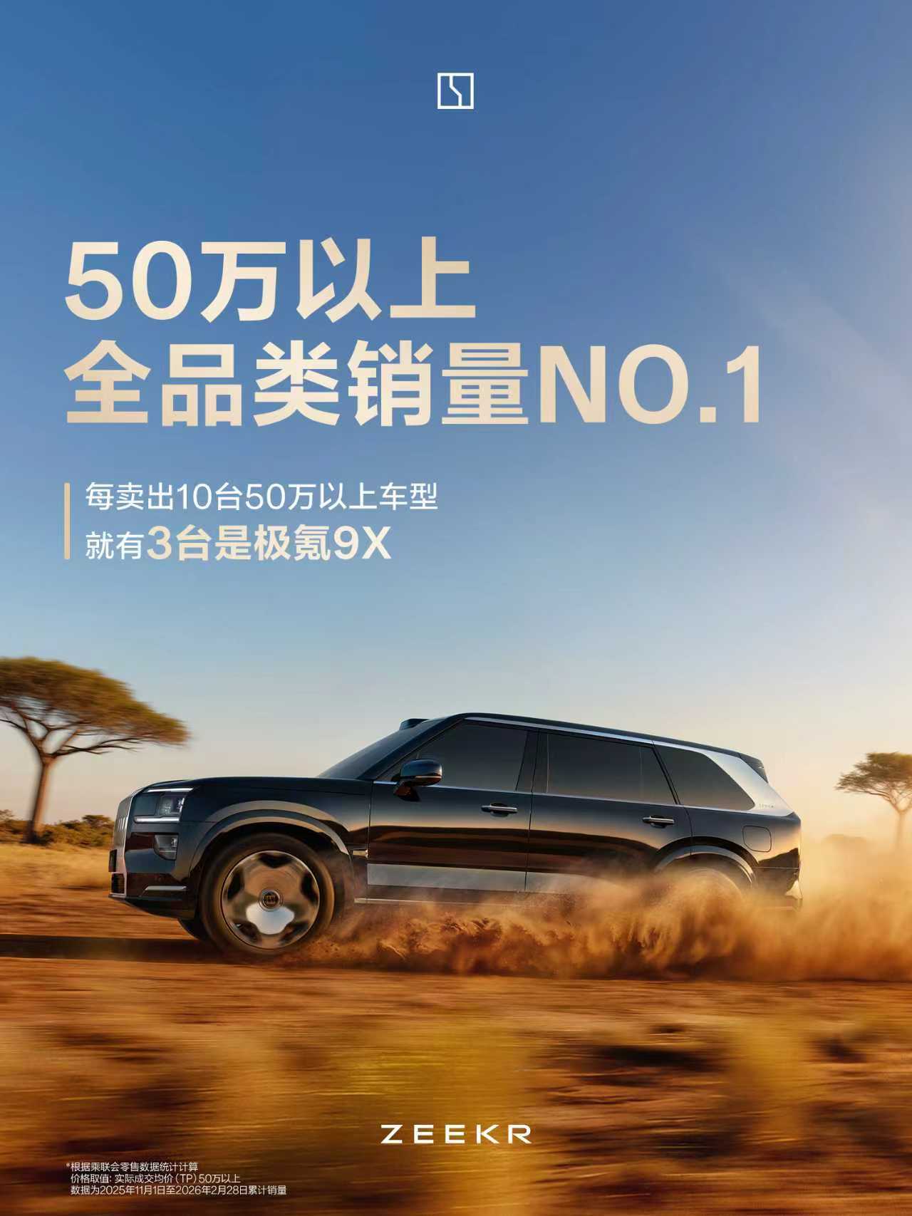 极氪9X连续4个月销量第一50万以上全品类销量冠军每卖出10台50万以上的车型就有3台9X极氪9X