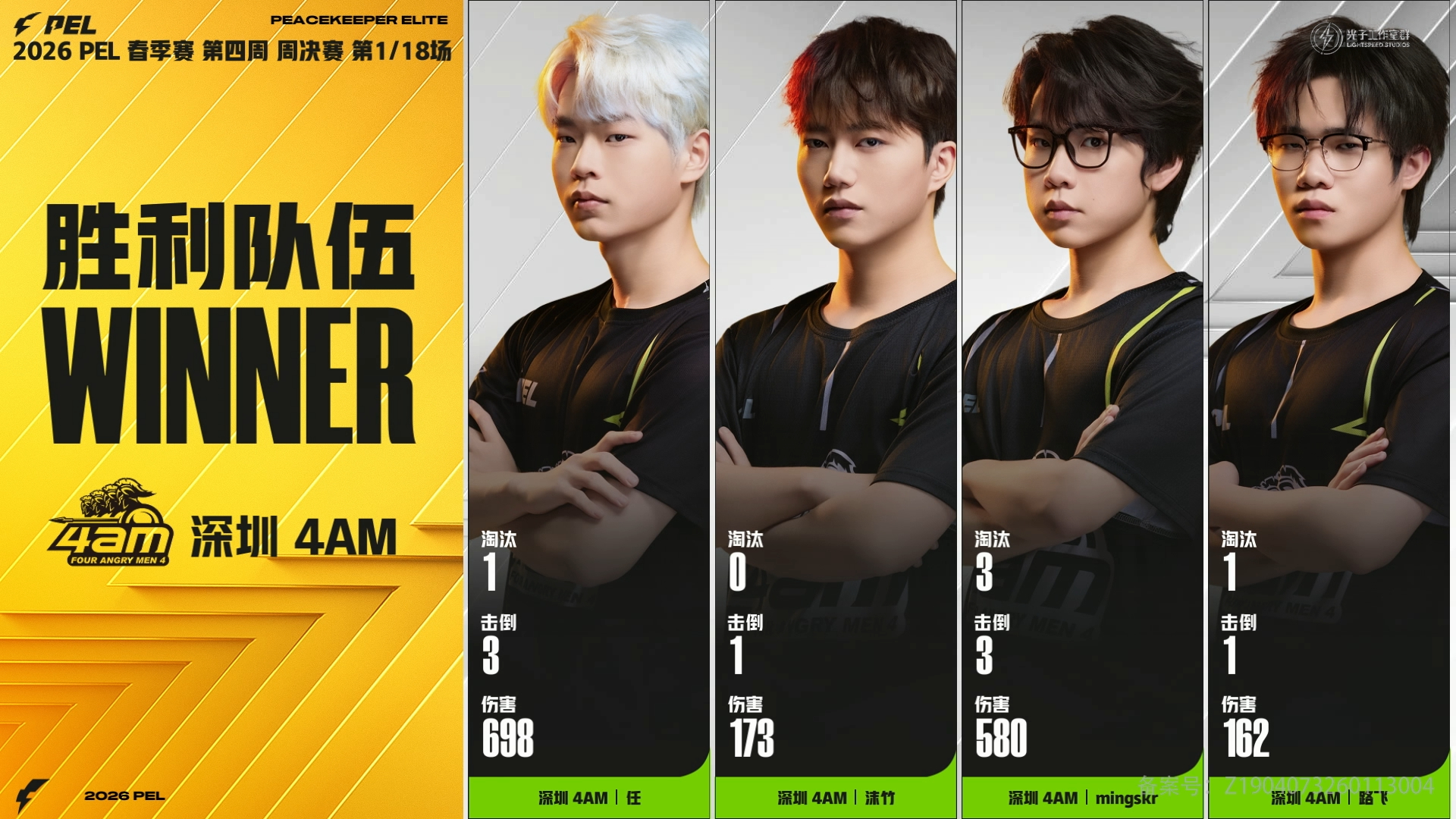 4AM决赛圈完美运营,mingskr关键破局,全员合力拿下开门红,剑指周冠4AM荣都开门红PEL春季赛第四周周决赛
