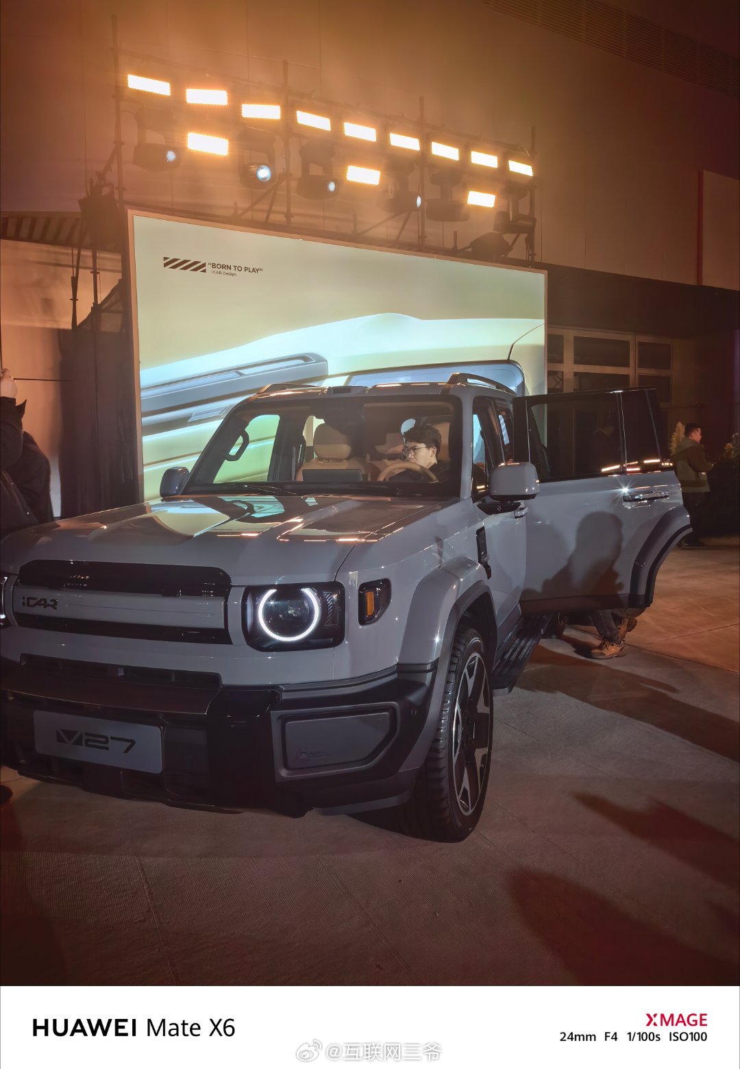 V27全能硬派全家都爱大v聊车地平线HSD城野皆好开 来到icarv27 上市发布会现场了,除了几个主流色系,现场还有两台硬核改装版实车,满身泥泞穿越回来,很有越野风,超帅气。大家猜猜看,今晚这款增程方盒子icar v27起售价多少