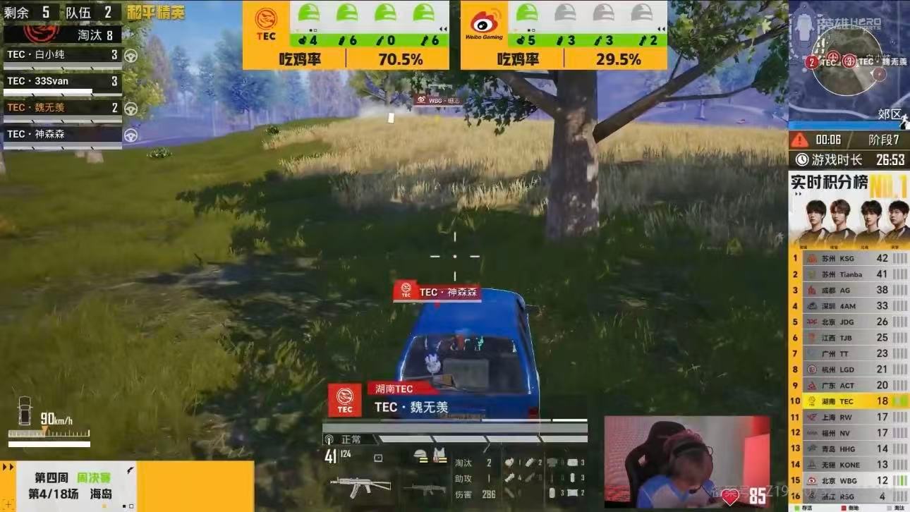 TEC海岛满编吃鸡恭喜TEC海岛满编吃鸡!决赛圈占据地形优势,配合默契拿下胜利,暂列第五继续加油!