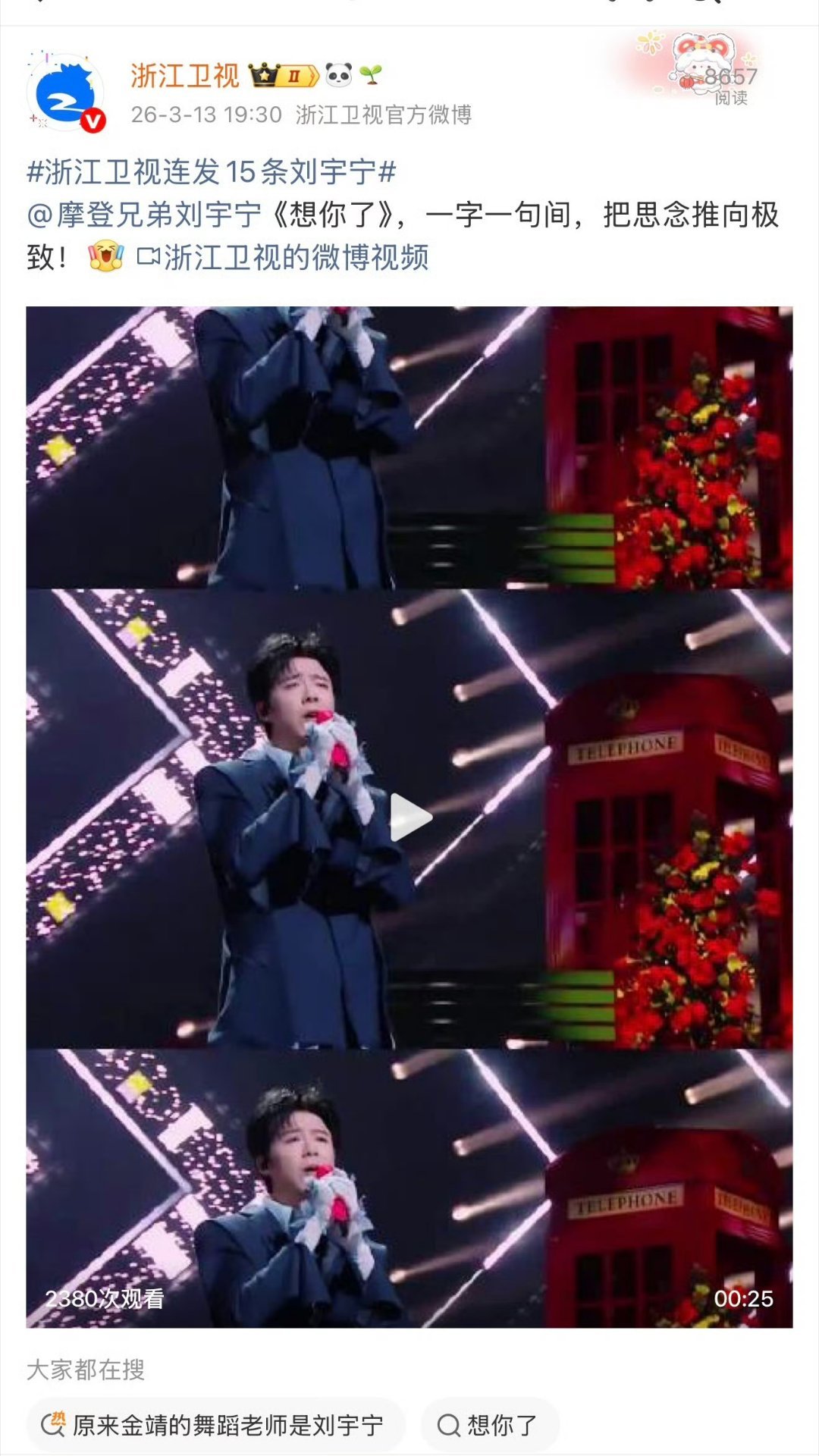 浙江卫视连发15条刘宇宁 原来金靖的舞蹈老师是刘宇宁 铁证 孙红雷刘宇宁 刘宇宁杭州演唱会