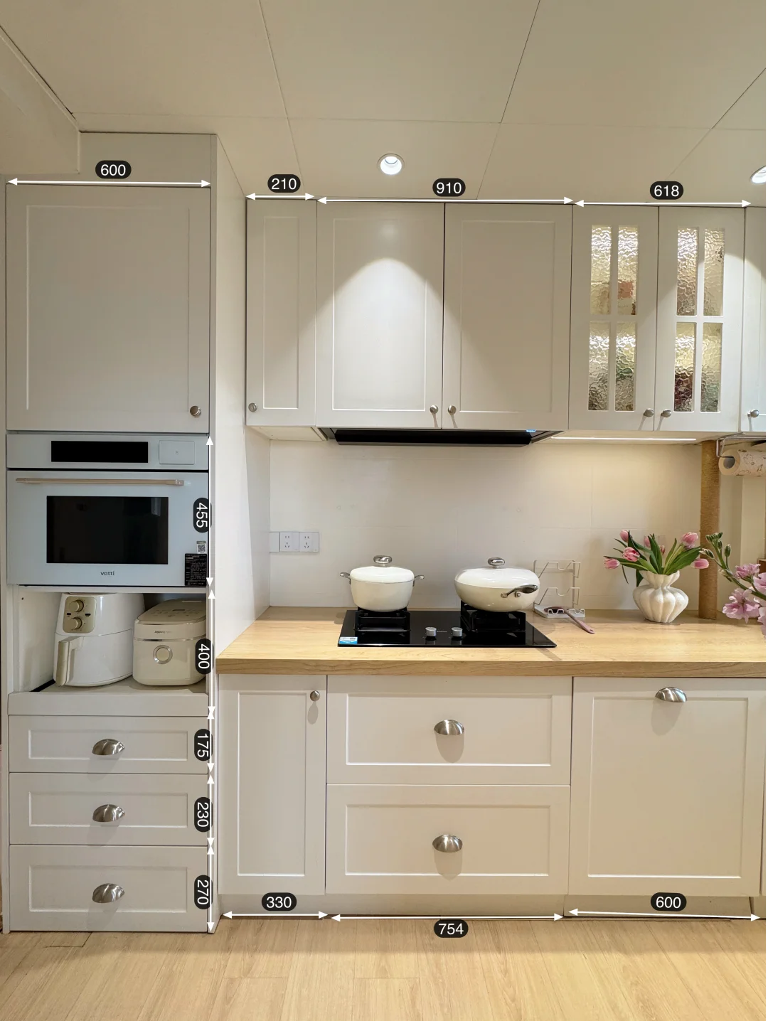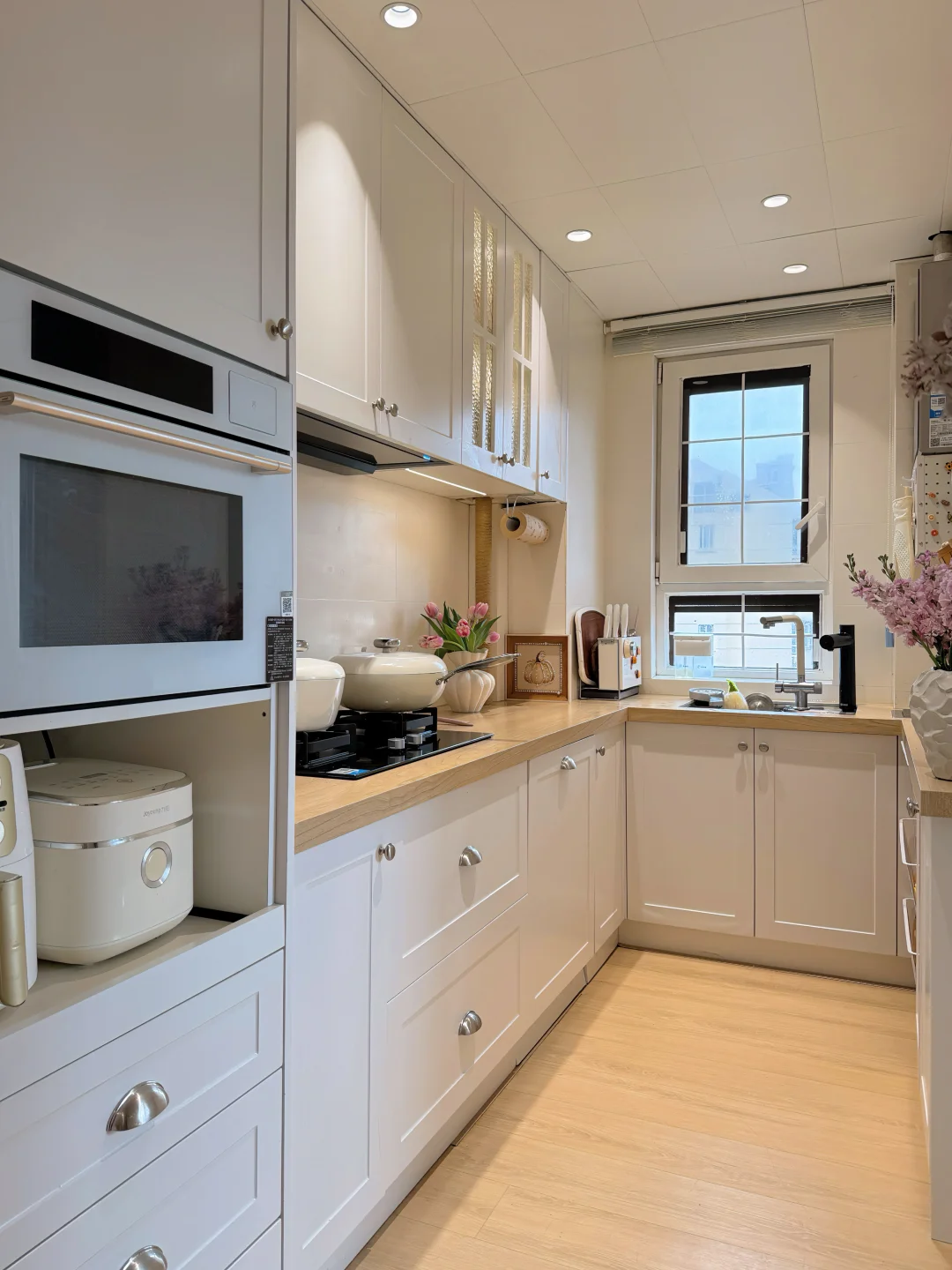 ✅厨房收纳:利用纵向空间增加一组电器高柜,小家电、工具、囤货都有自己的位置,台面不显乱!
