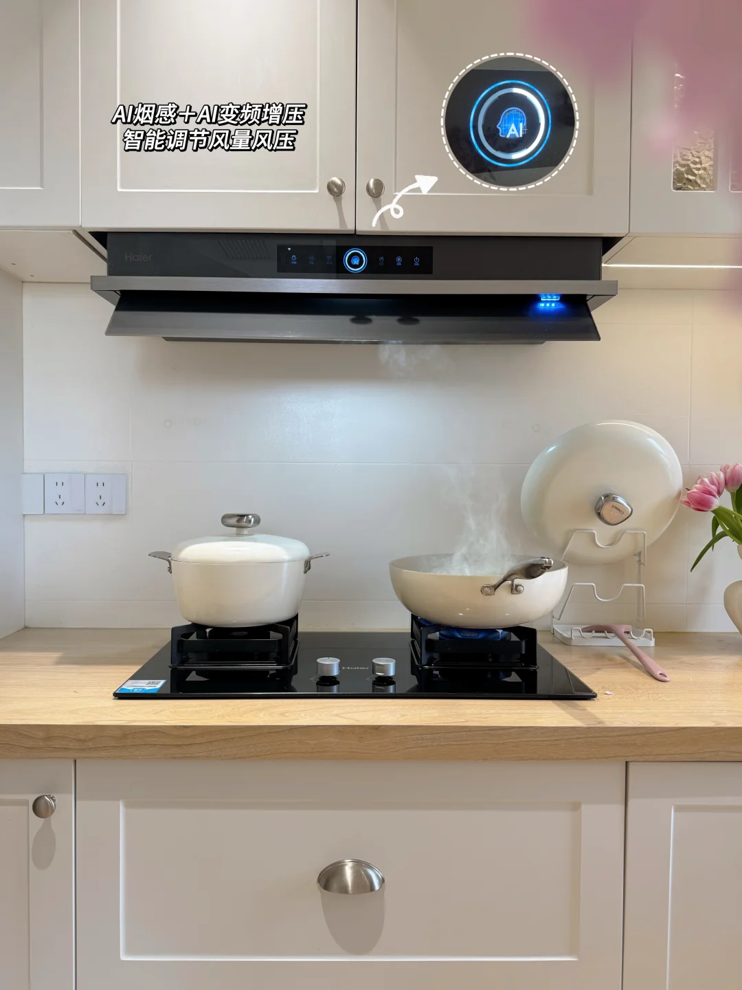 ✅厨电选择:我尽量都选择了使用起来省心的家电,就比如我家用的这款海尔Seeker升降油烟机S70~