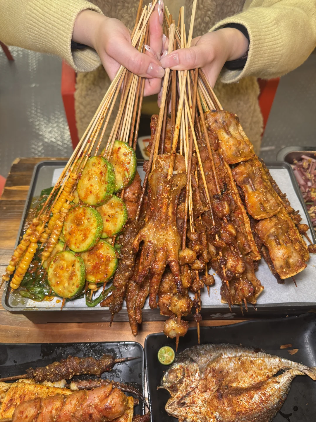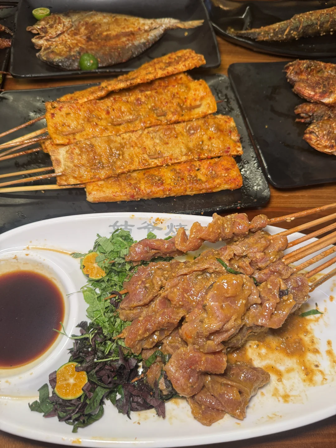 人多就是好!可以吃到很品种的烧烤! 点单推荐: ▫️超大牛肉串,很嫩的大片牛肉!一片肉一大口 ▫️湿烤豆腐皮,贼入味!真的好爱 ▫️柳州特色烤鱼,宵夜必点 ▫️炒粉,有锅气!