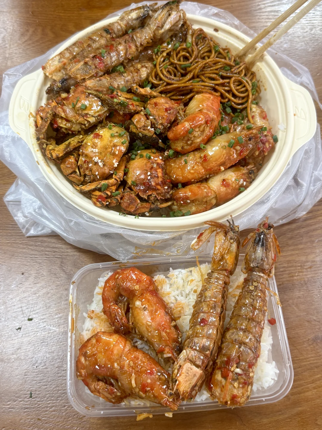 今天中午我这是不是吃的有点多了但是和虾王比还是有所不及的